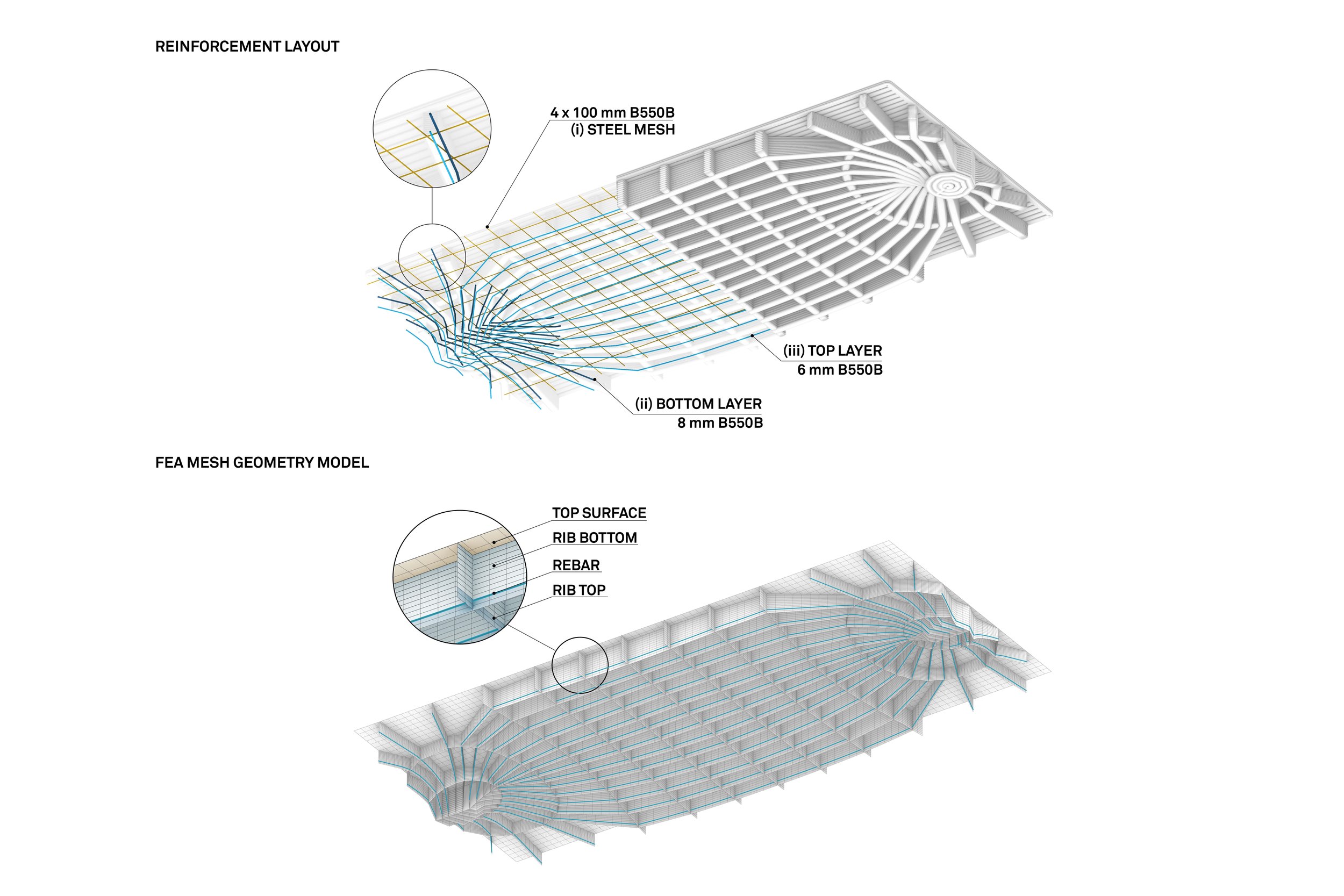 - En af udfordringer har været, hvordan man forudser betondækkenes strukturelle adfærd. Det krævede en detaljeret modellering af printsekvensen, materialefordelingen og fremstillingsprocessen og en kombineret brug af det, der hedder finite element-simulationer, siger Roberto Naboni