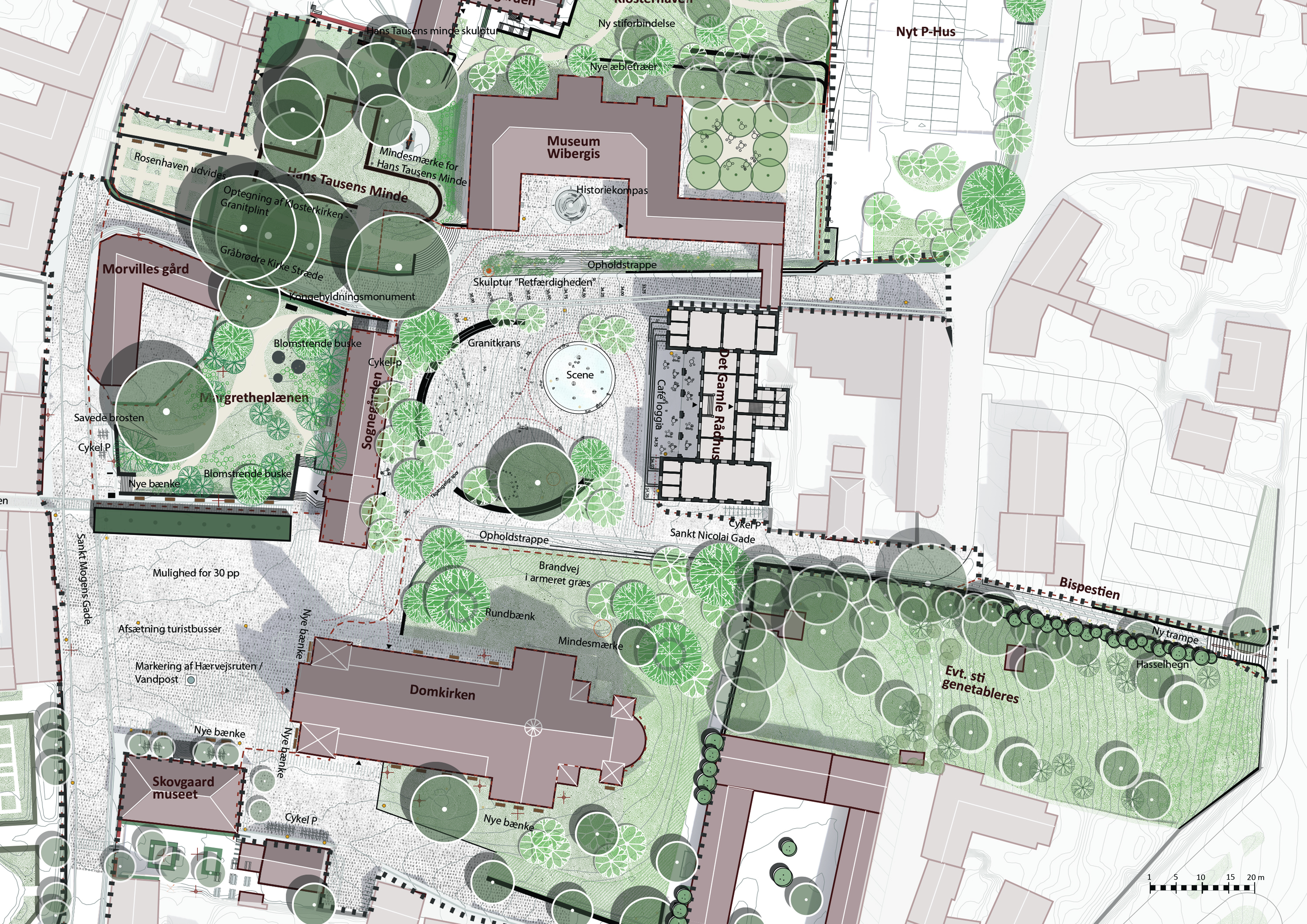 Domkirkekvarteret ligger midt i det, der engang var et dramatisk istidslandskab, og vinderforslaget binder smukt kvarterets mange selvstændige by- og haverum sammen, men understreger samtidig deres særlige karakterer.