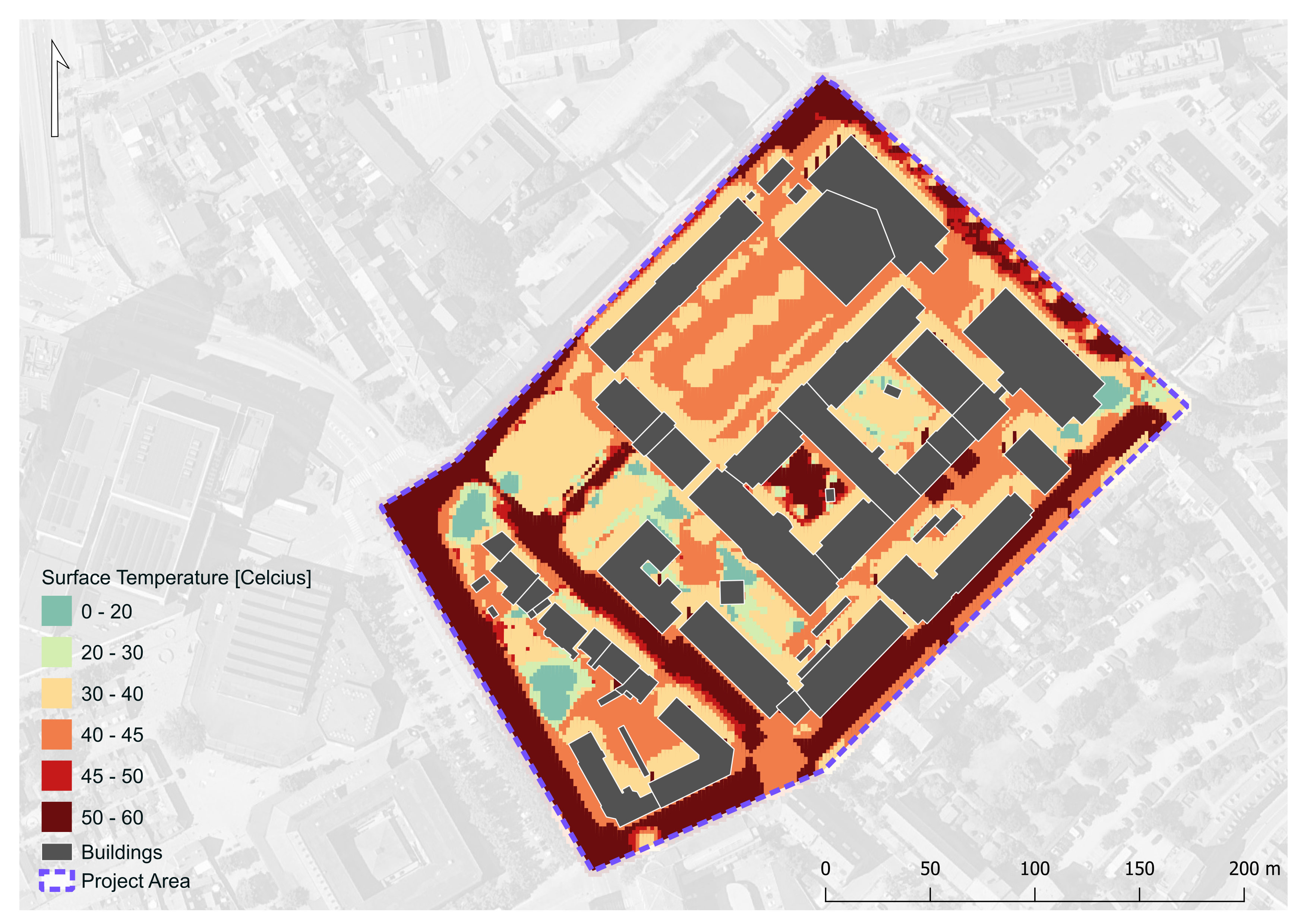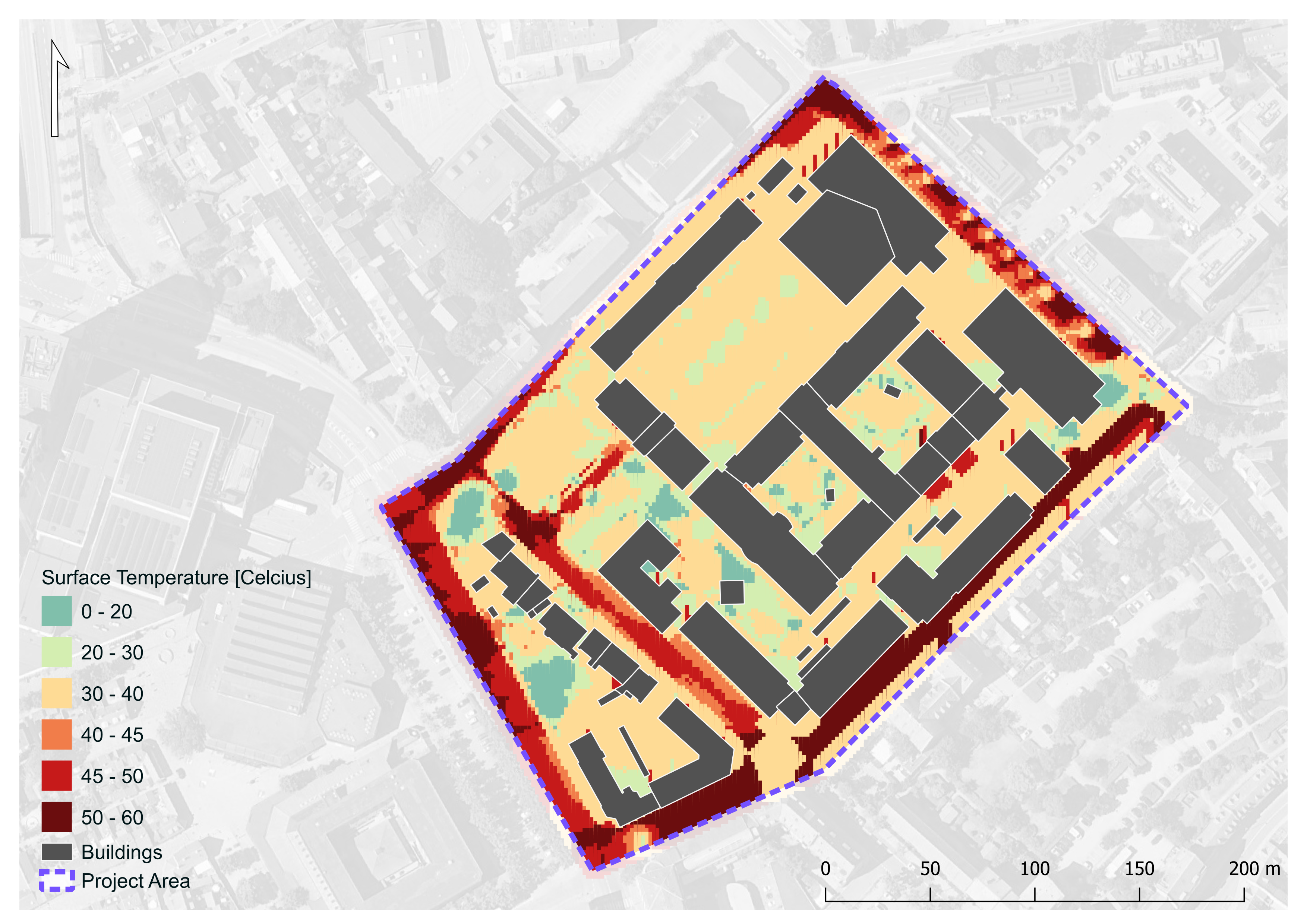 ”Et urban heat map er en effektiv måde at kortlægge byens overfladetemperaturer på. Det kan sammen med en demografisk analyse danne grundlag for at identificere områder, hvor man særligt bør iværksætte begrønning og justering af farven på tage, fliser, asfalt og anden belægning i byen.”