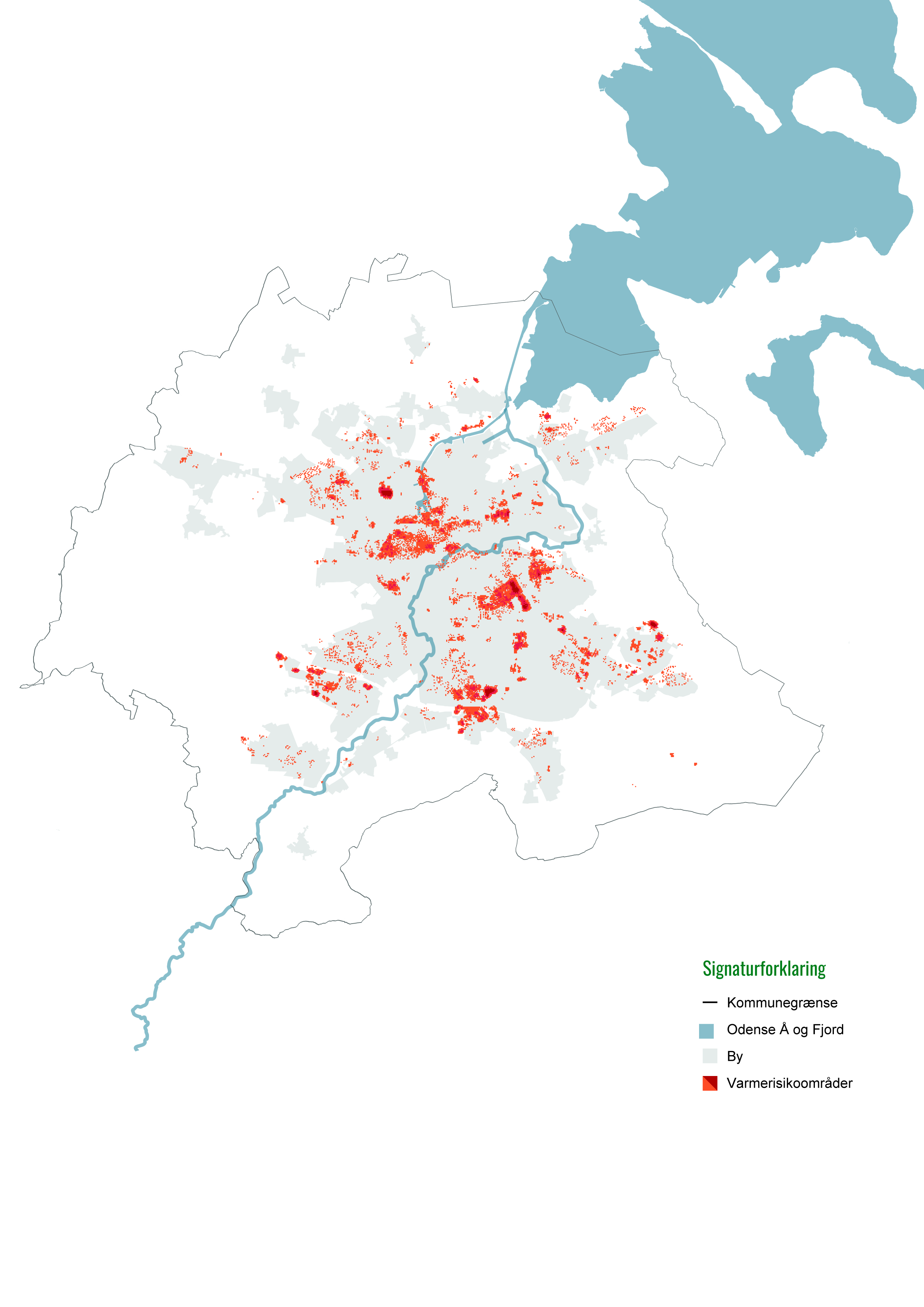 I Odense har Sweco hjulpet Odense Kommune med at udarbejde et urban heat map over byen. Kortet viser visuelt, hvordan fremtidens højere temperaturer vil påvirke byen med det formål at identificere de områder, hvor sårbare grupper er særligt udsatte for overophedning.