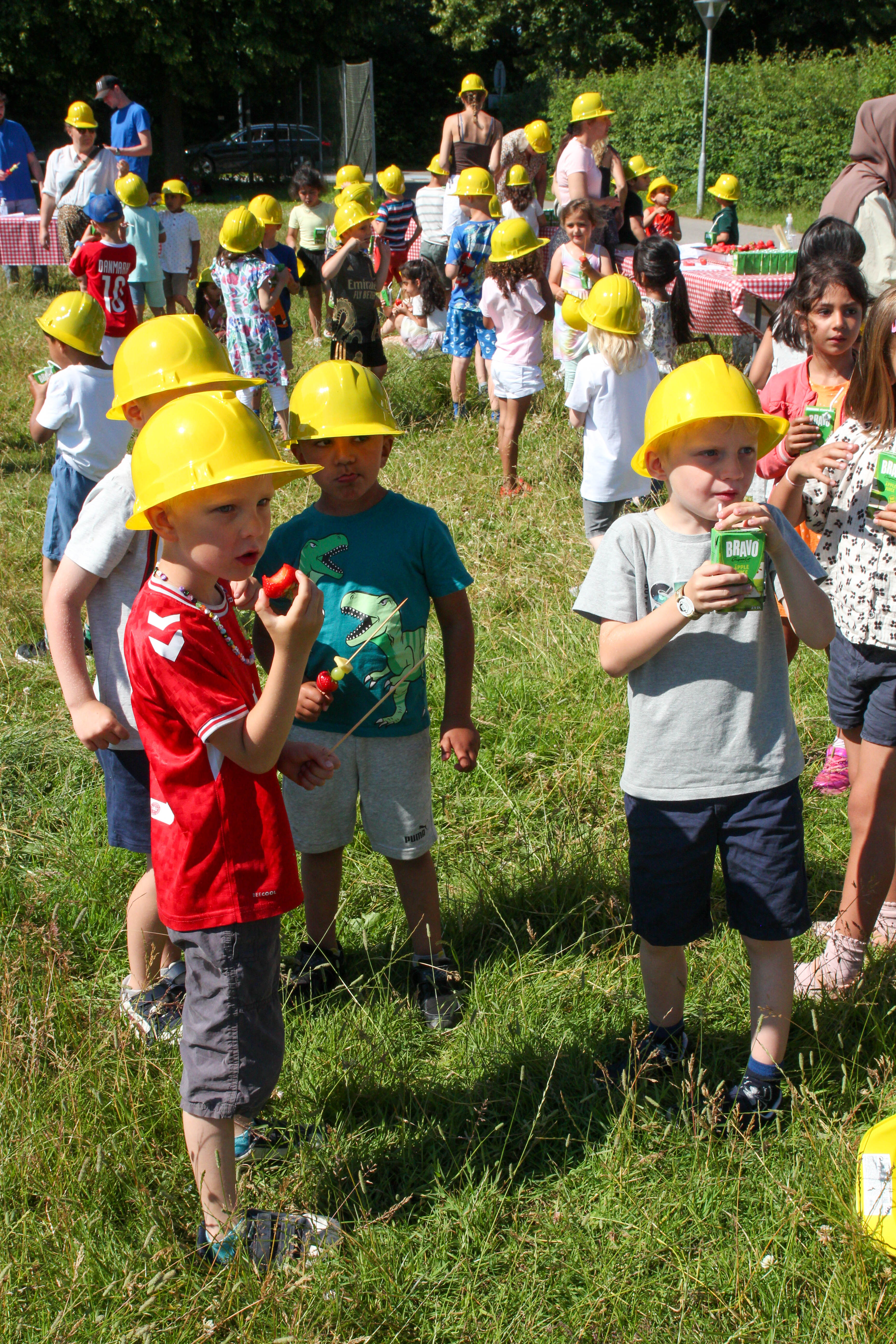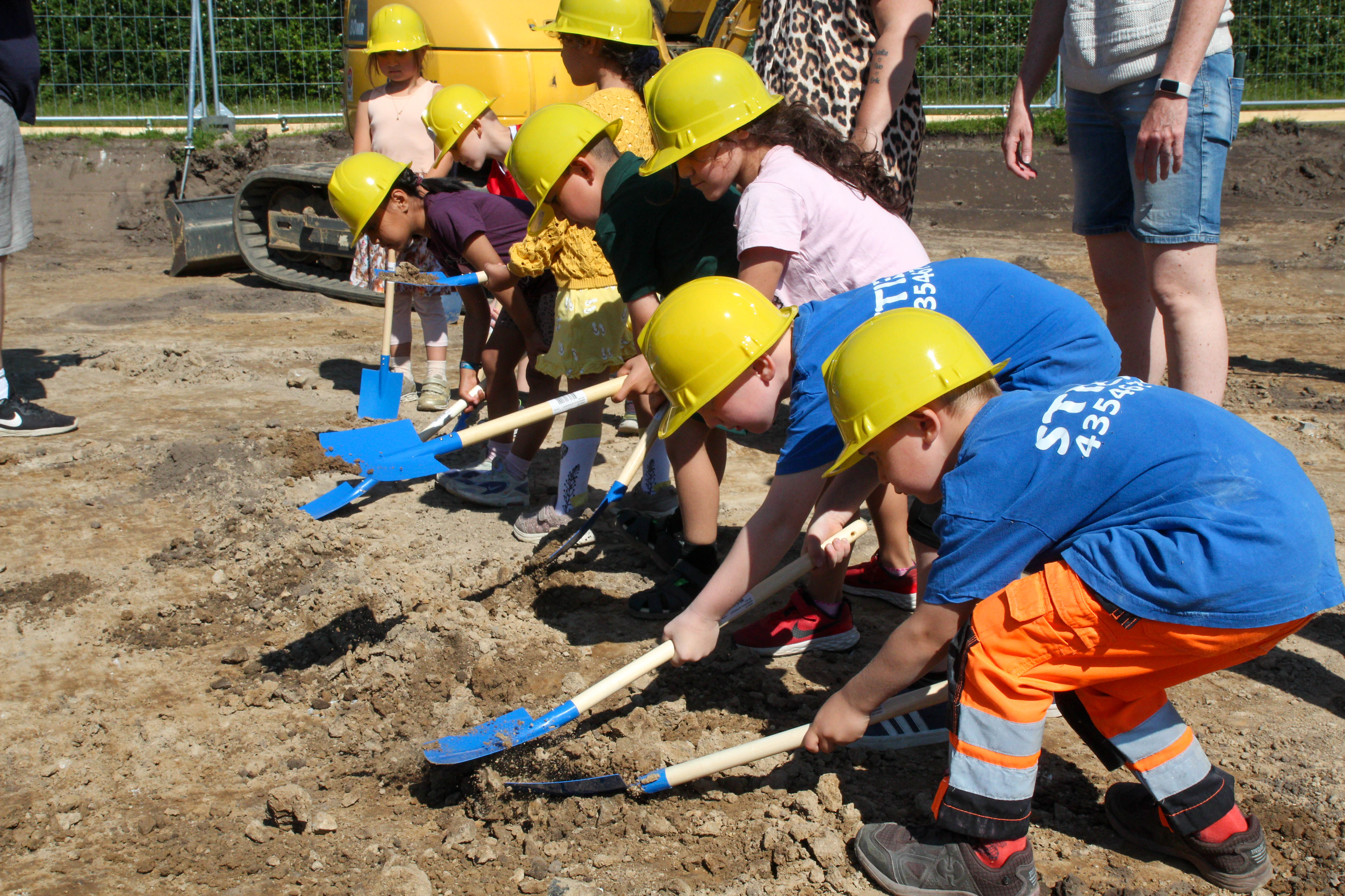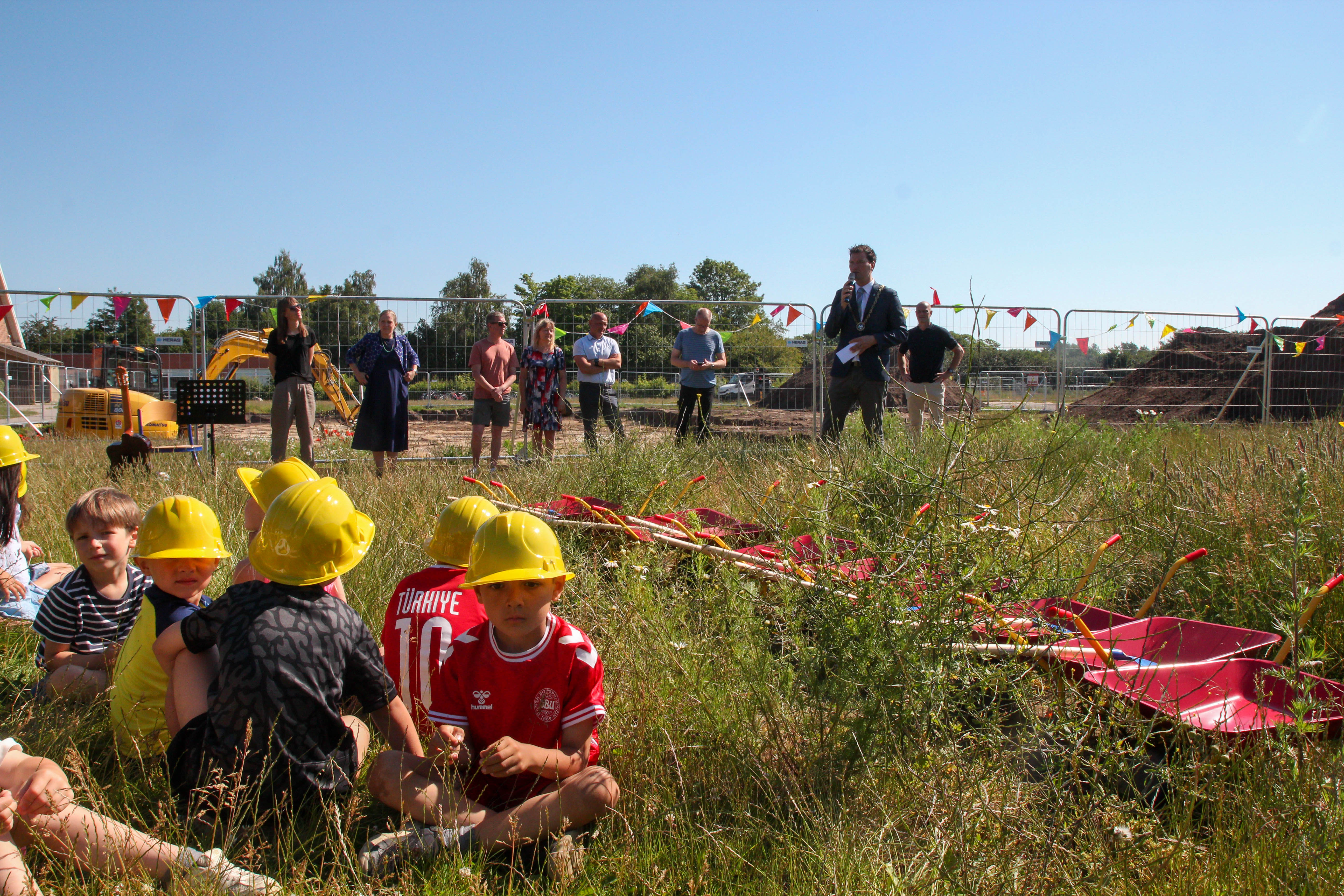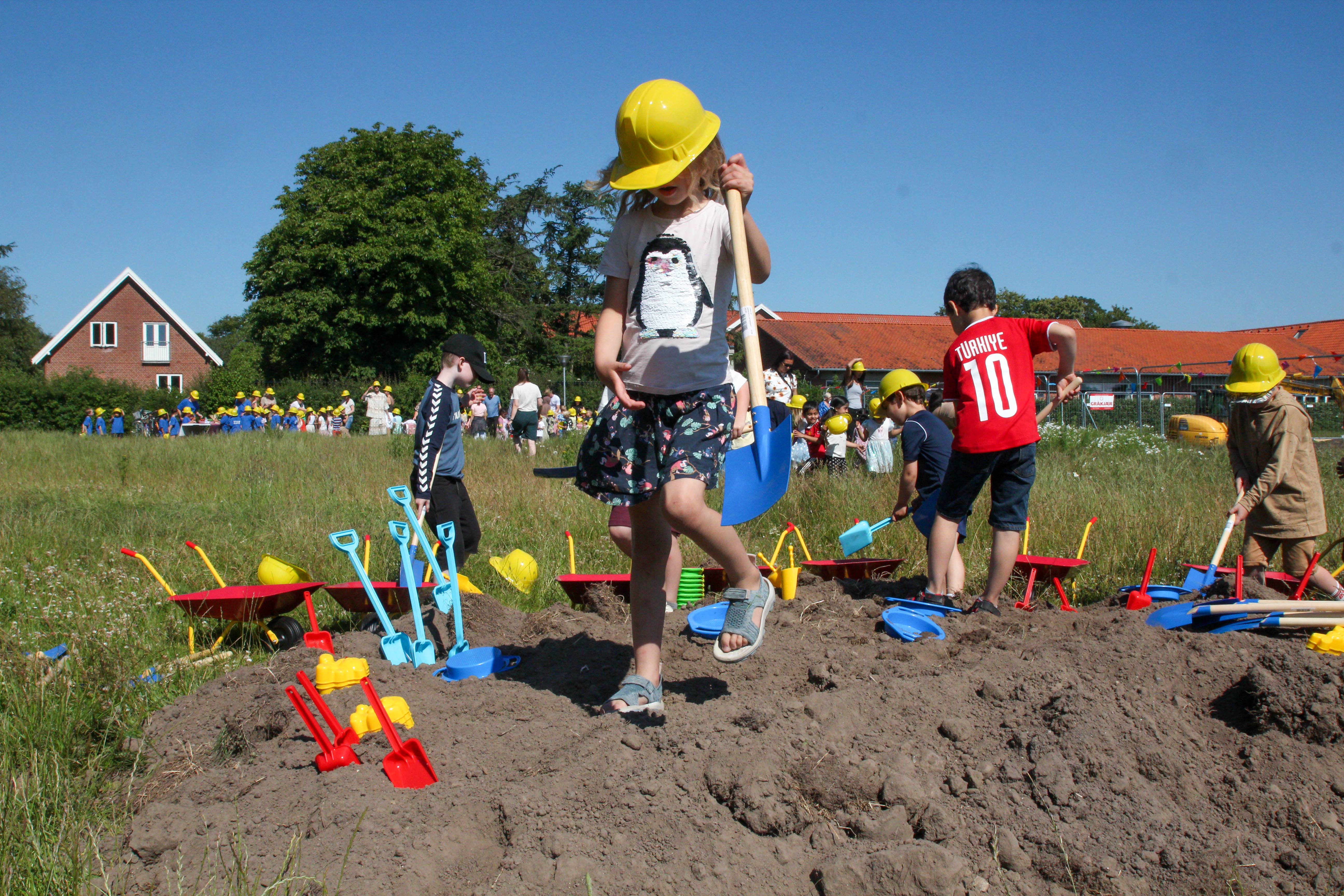 Der var gang i skovlene og 10 små rødgule trillebøre i børnestørrelser onsdag formiddag foran Vallensbæk Skole. Her havde Vallensbæk Kommune og entreprenøren Gråkjær inviteret over 100 børnehavebørn fra de nærmeste institutioner til officielt at sætte byggeriet af kommunens nye daginstitution i gang.