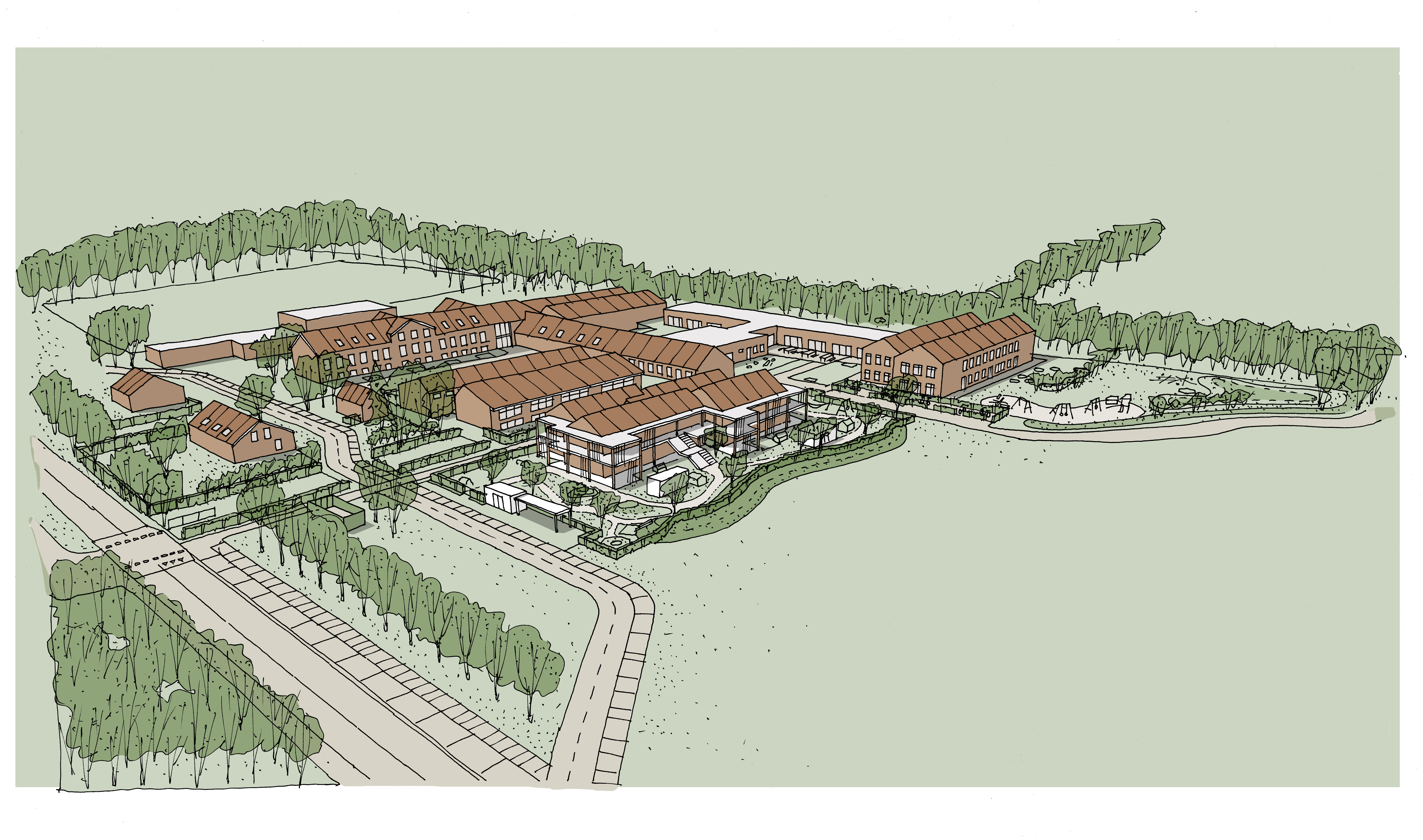 Den nye institution bliver opført i røde genbrugsmursten og med et flot saddeltag, så byggeriet kommer til at tale godt sammen med den nærmeste nabo, Vallensbæk Skole.
