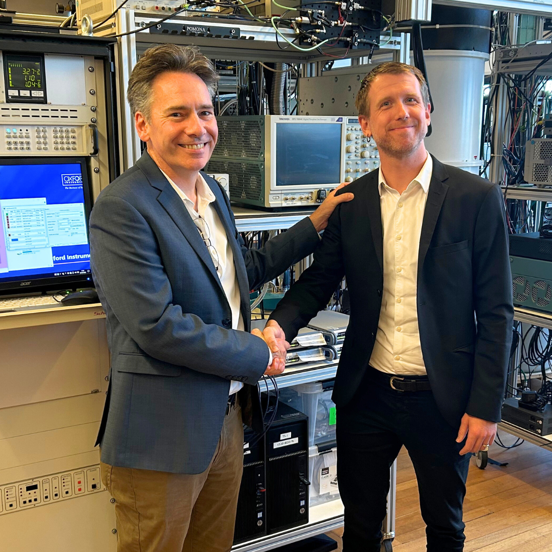 - For at realisere kvantecomputeres lovende potentiale, er vi nødt til at udforske, hvordan vi bygger systemer, der er robuste og som kan udbygges og reproduceres. Dette unikke samarbejde sætter fart på innovationen, fordi vi kan udveksle mennesker og ideer, køre parallelle eksperimenter, og sammenligne resultater. Bedre endnu, vi kan fortsætte vores tætte samarbejde med lektor Kjaergaard – en hastigt voksende stjerne i vores felt – og hans gruppe i København. Sådan skal det gøres, siger professor Oliver.