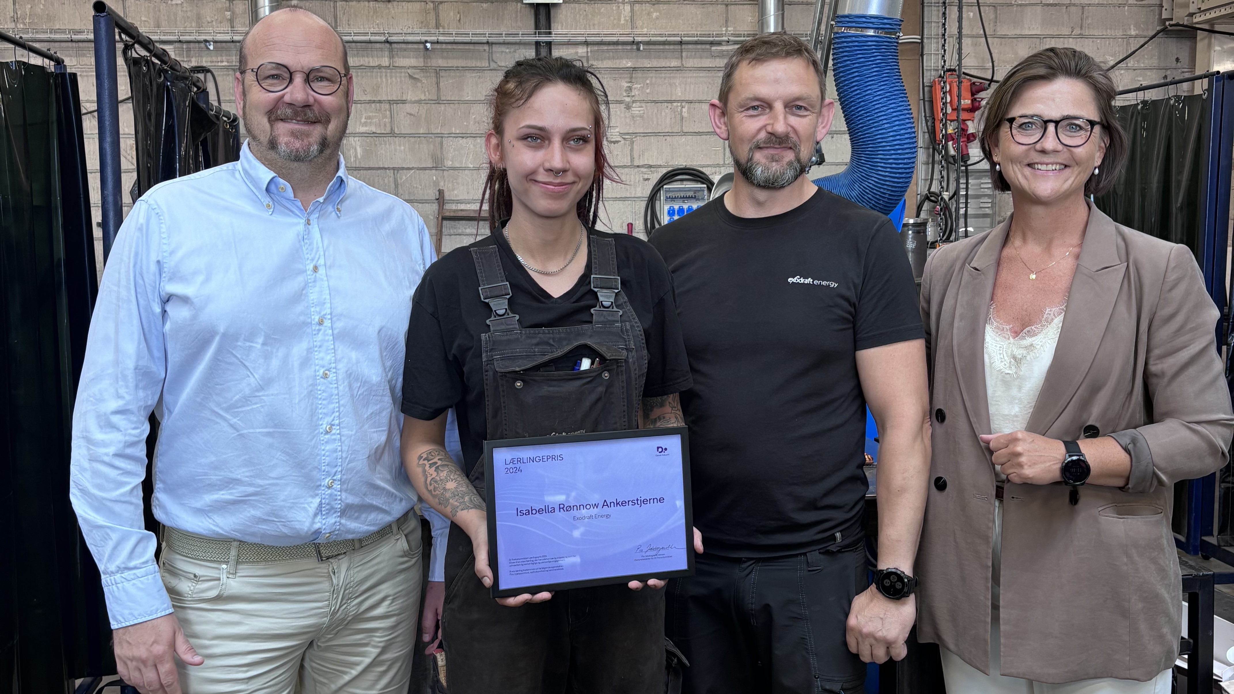 Den fornemme pris blev overrakt til den unge smed ved et arrangement på virksomheden Exodraft Energy i Vejle fredag. Det var bestyrelsesleder for DI Trekantområdet Pia Jakobsgaard-Iversen der overrakte prisen.