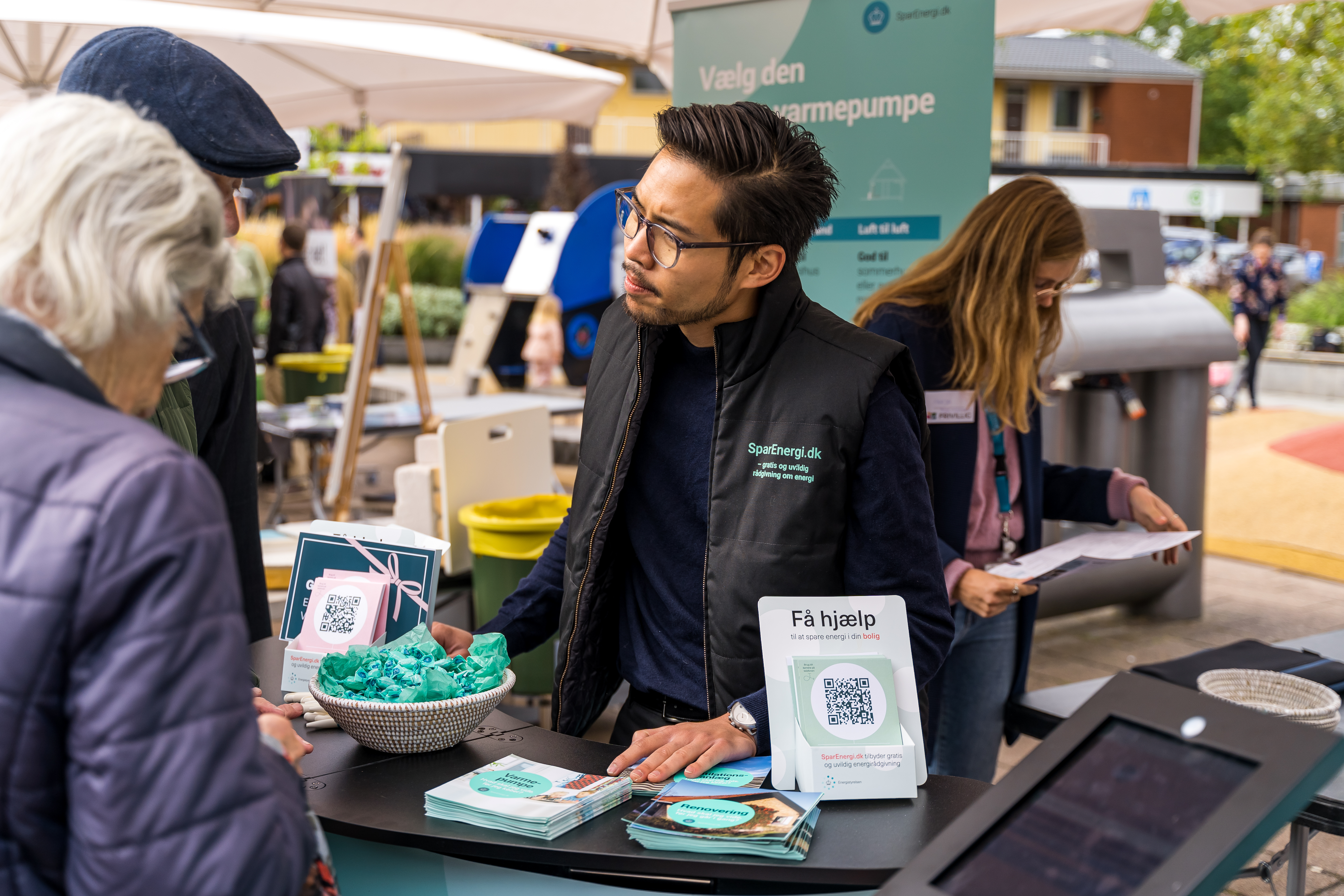 En SparEnergi-medarbejder forklarer mulighederne med varmepumper til interesserede borgere ved Klimafolkemødet 2022.