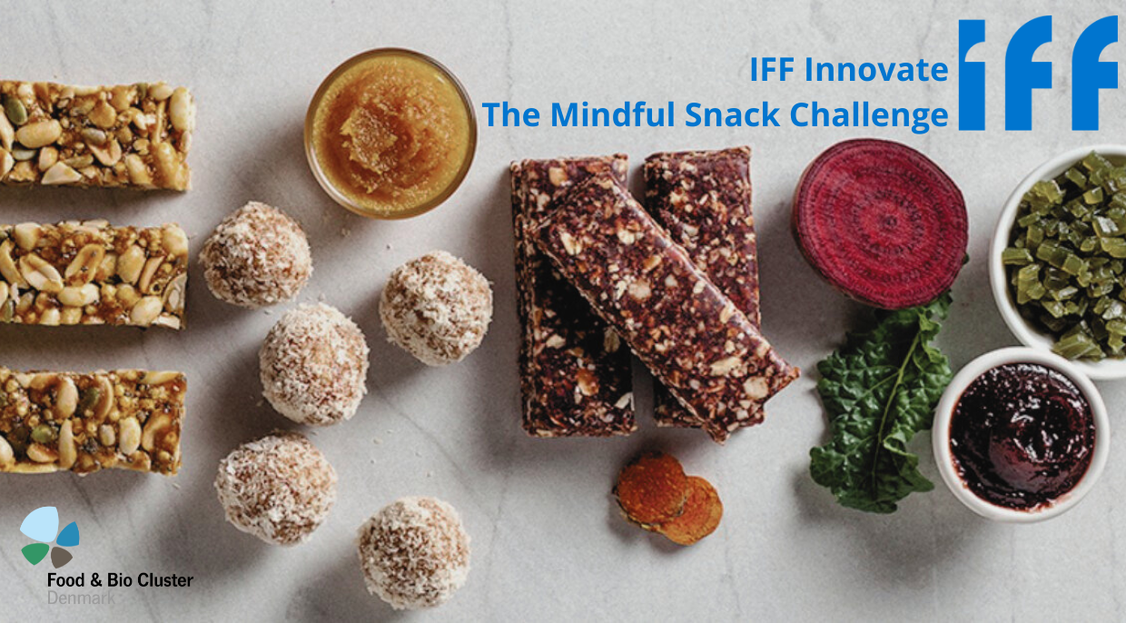 IFF Innovate - The Mindful Snack Challenge er Food & Bio Cluster Denmarks andet Innovate forløb, hvor store virksomheder bliver matchet med mindre. Tidligere på året gennemførte fødevareklyngen et samarbejde med LIDL om at finde nye og innovative fødevareprodukter til butikskædens hylder. Denne gang er fokus på ingredienser til funktionelle, smagfulde og sunde snacks til et globalt marked.