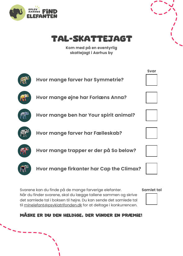 I 'Find elefanten - oplev Aarhus'' gratis idékatalog er der sjove opgaver, krea-aktiviteter – og gode råd til, hvordan I kan tale om psykisk sygdom i børnehøjde. Skal familien på find-elefanten-udflugt i sommerferien, så kan I hente et bykort eller downloade appen.