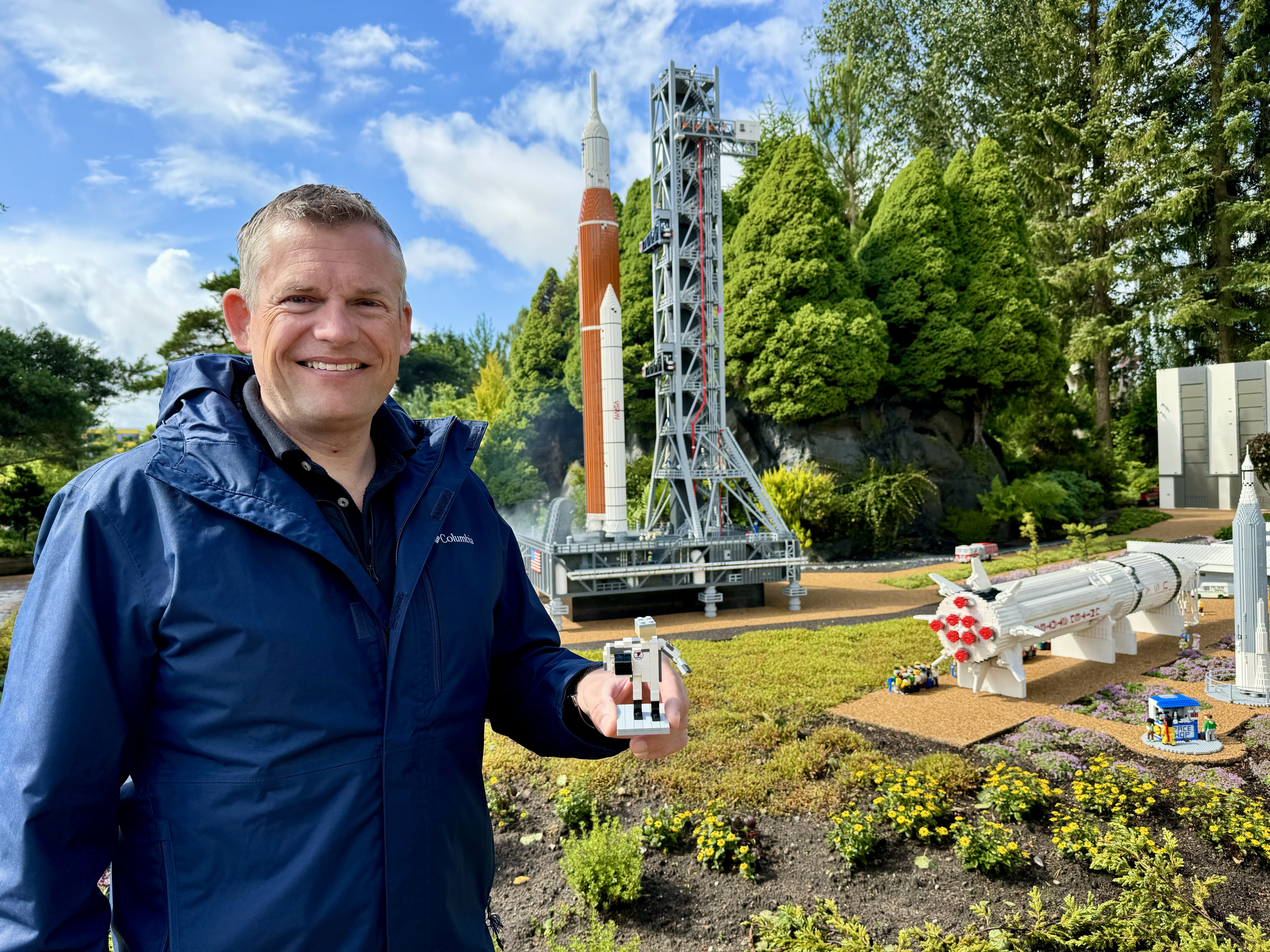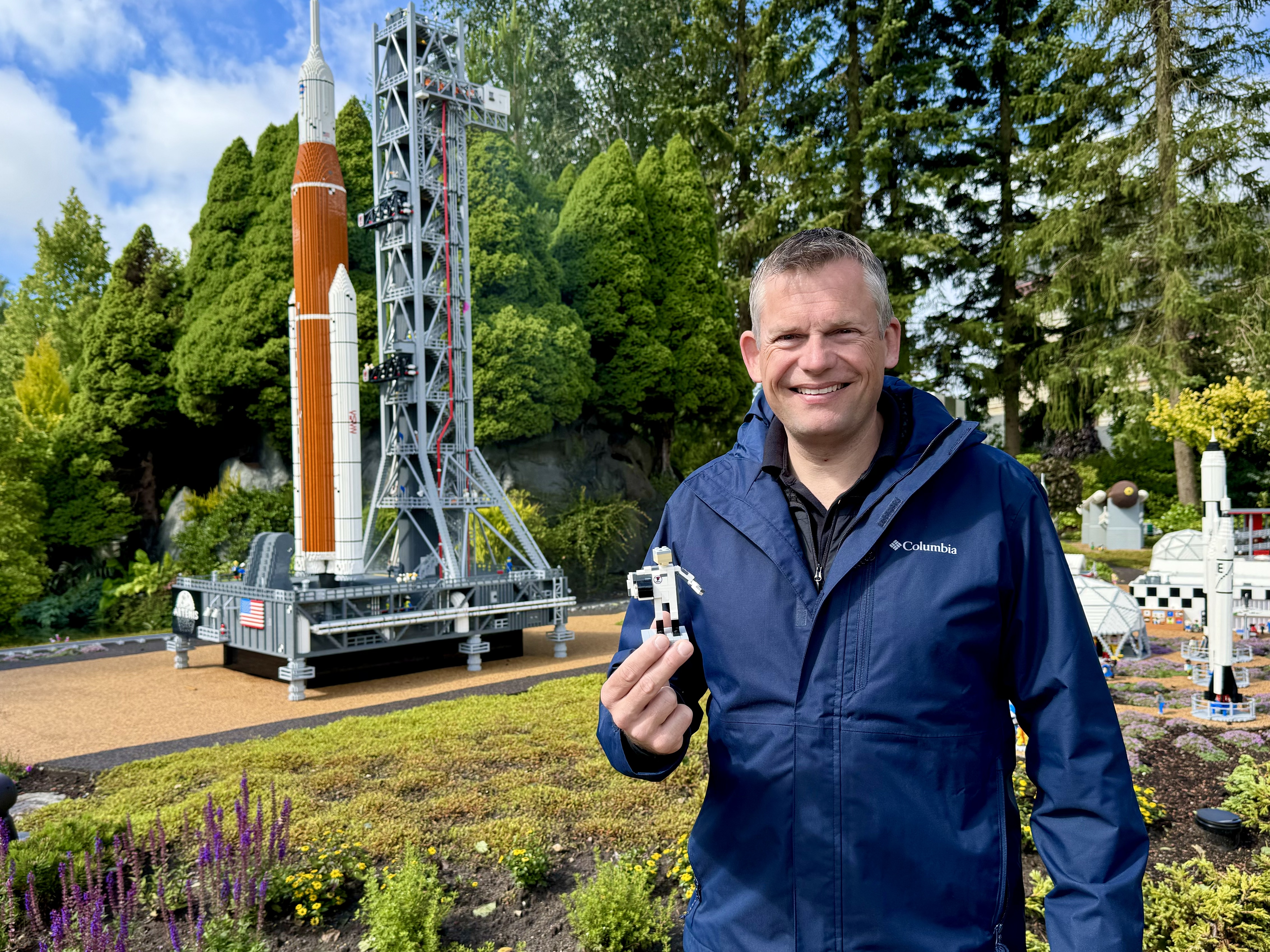 - Jeg er meget imponeret over området med Kennedy Space Center her i LEGOLAND, og særligt raketten, som efter en nedtælling går i luften. Der er mange detaljer fra virkeligheden, som jeg synes, LEGO byggerne har været rigtig gode til at få med til området her i Miniland, siger Andreas Mogensen.