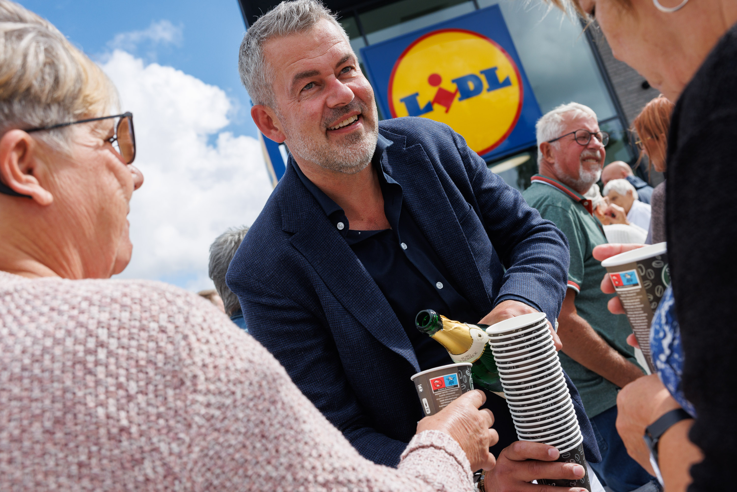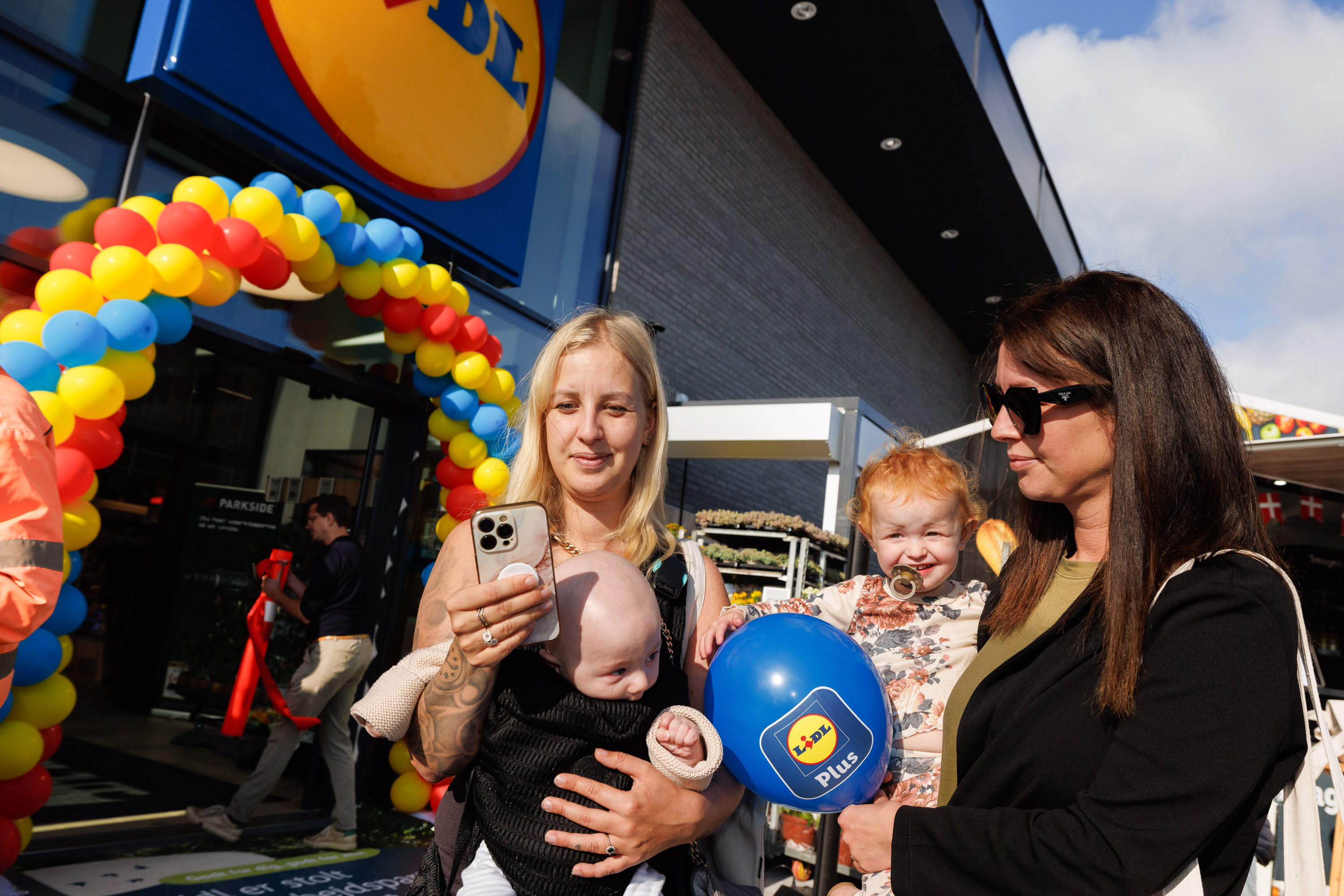 Efter et par åbningstaler kunne butikschef Annika Eid og 2. viceborgmester Karina Fromberg (V) klippe det røde bånd, og lade kunderne strømme ind i butikken, som i dagens anledning var fyldt med gode åbningstilbud og smagsprøver på mange af Lidls produkter.