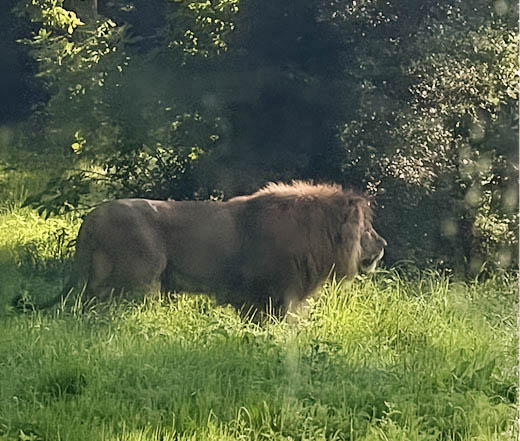 Den ukrainske hanløve Akeru på 3 år, kom til Danmark fra Poznan Zoo for bare 10 dage siden og er allerede faldet så godt til, at han nu har indtaget de store arealer. Straks efter lågen blev åbnet, bevægede han sig nysgerrigt ud i anlægget.