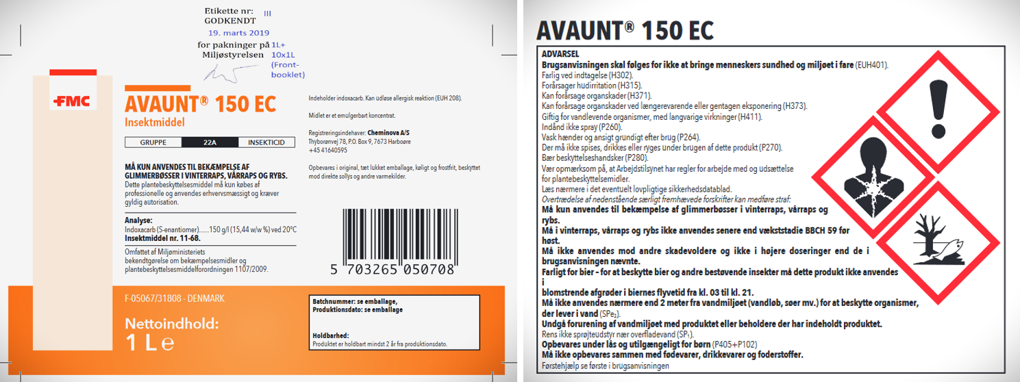 • Indoxacarb forbudt i DK 2011; dog 4 produkter på Cheminova (FMC) frem til 2022