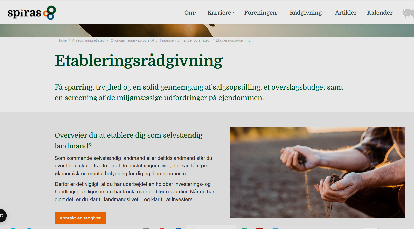 ”Landbrugsstyrelsen tilbyder en hjælpende hånd i form af etableringsstøtte, hvor unge landbrugere og gartnere kan få et tilskud på ca. 745.000 kroner, når de etablerer sig med en heltidsbedrift. Ordningen er gældende fra 2023 – 2027, dog kan der kun ansøges én gang pr. ansøger. Kontakt os, hvis du vil høre mere om dine muligheder for etableringsstøtte.”