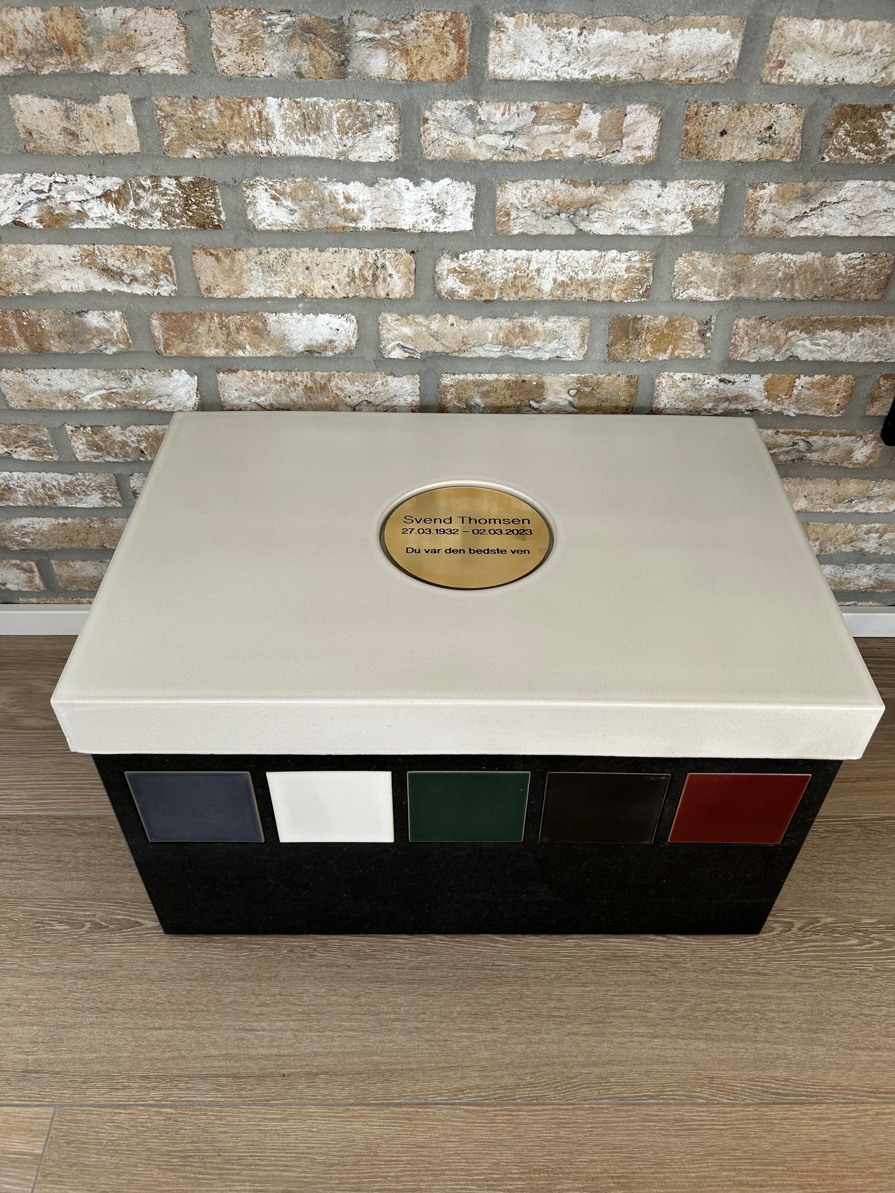 "Sea Urchin," Et design stærkt inspireret af naturen og dets organiske og rolige linjer. Som noget særligt for vores produkter er de udsmykket med en messingplade hvor navn, datoer etc. kan blive indgraveret uden at det skal gøres i stenen.