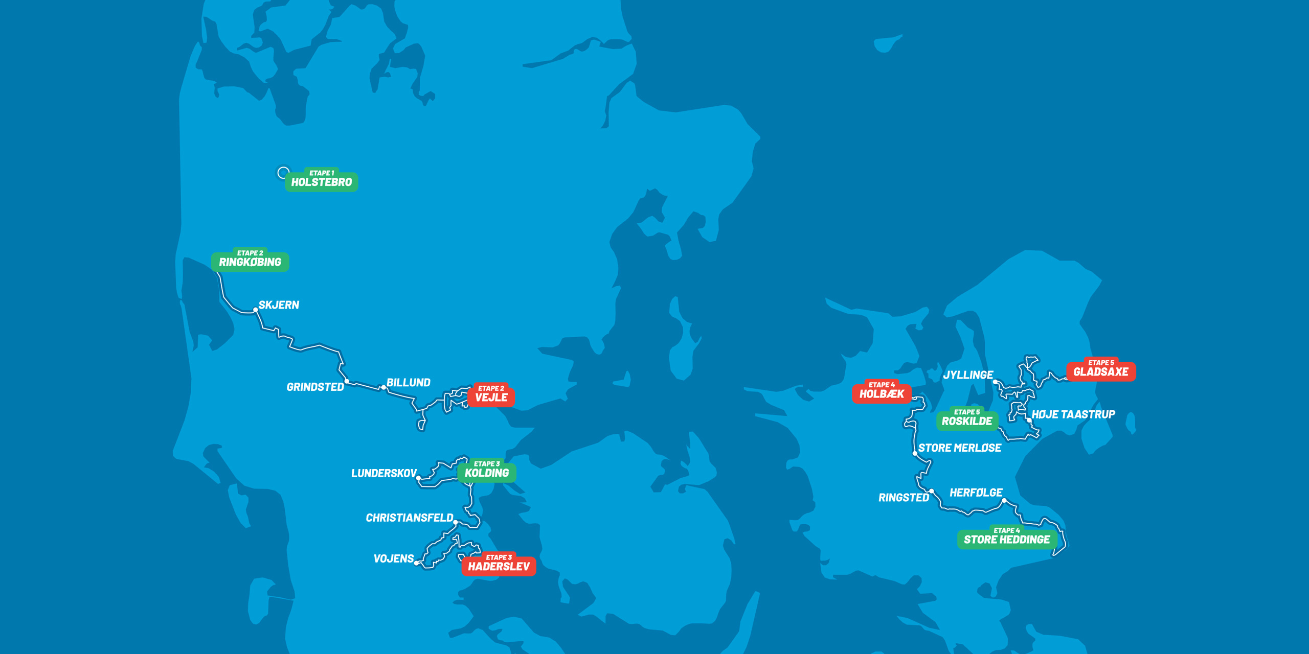 Cykelløbet varer fra onsdag den 14. august til søndag den 18. august, og i løbet af de fem dage kommer cykelrytterne i alt til at tilbagelægge en 742 kilometer lang rute med etaper både i Jylland og på Sjælland. Derfor kan trafikanter i store dele af landet forvente at blive påvirket af forlænget rejsetid.