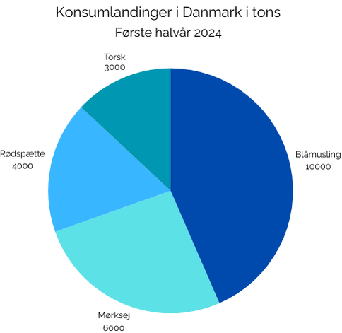 10.000 tons blåmuslinger blev landet i de danske havne fra januar til og med juni 2024. Dermed topper blåmuslingen listen over de mest fangede spisefisk og skaldyr i det første halve år af 2024.