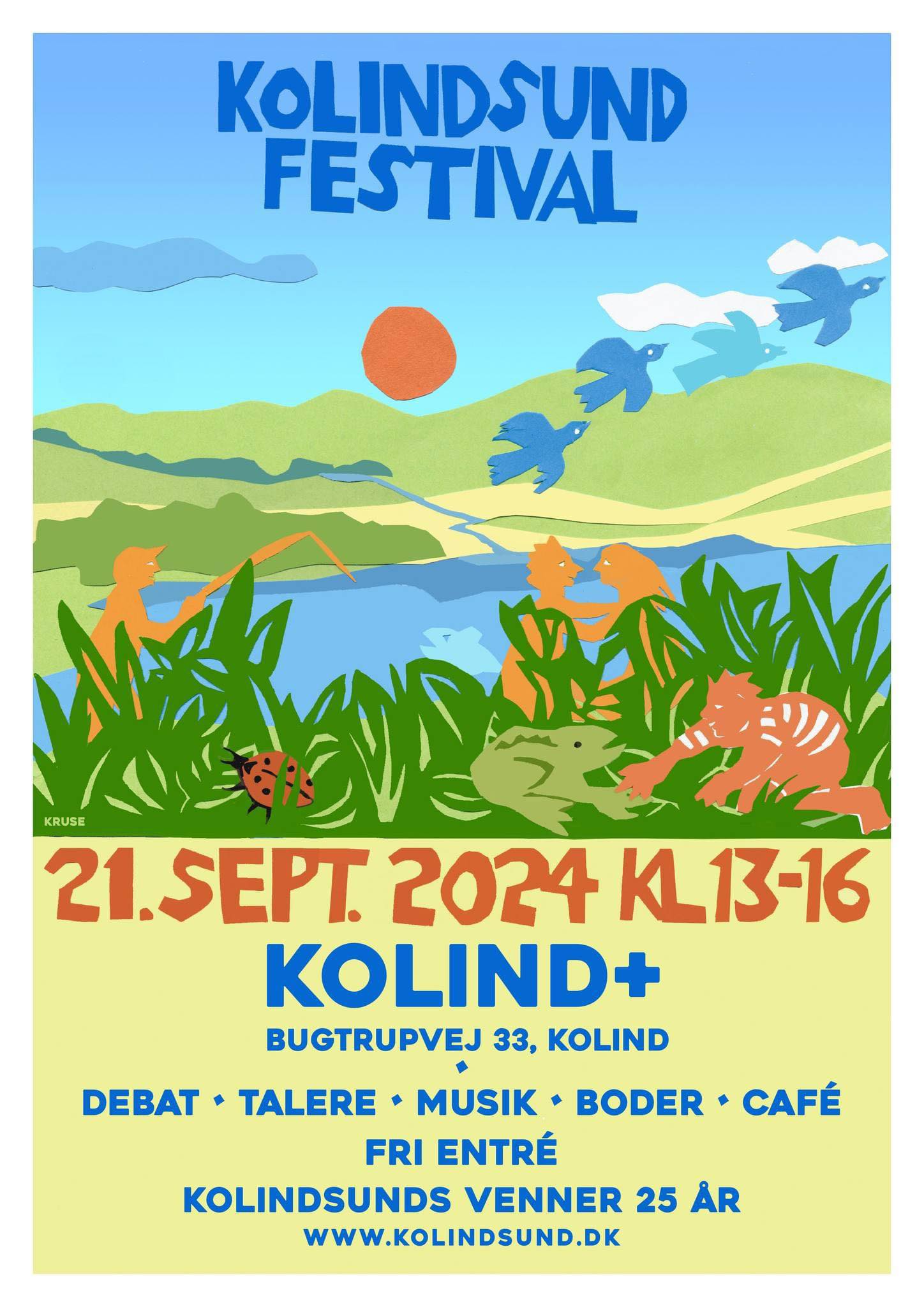 FEJRES SKAL DET, og det vil vi gøre med en stor Kolindsund Festival 21/9 i Kolind+, hvor vi byder på debat, der kommer lykønskningstalere, fagligt indlæg af Stiig Markager, børnearrangementer med gratis popcorn og slush ice, boder fra forskellige organisationer, lokal kunst med Kolindsund-tema, lidt godt til ganen og præsentation af hvad Kolindsunds Venner har bedrevet i løbet af de første 25 år.