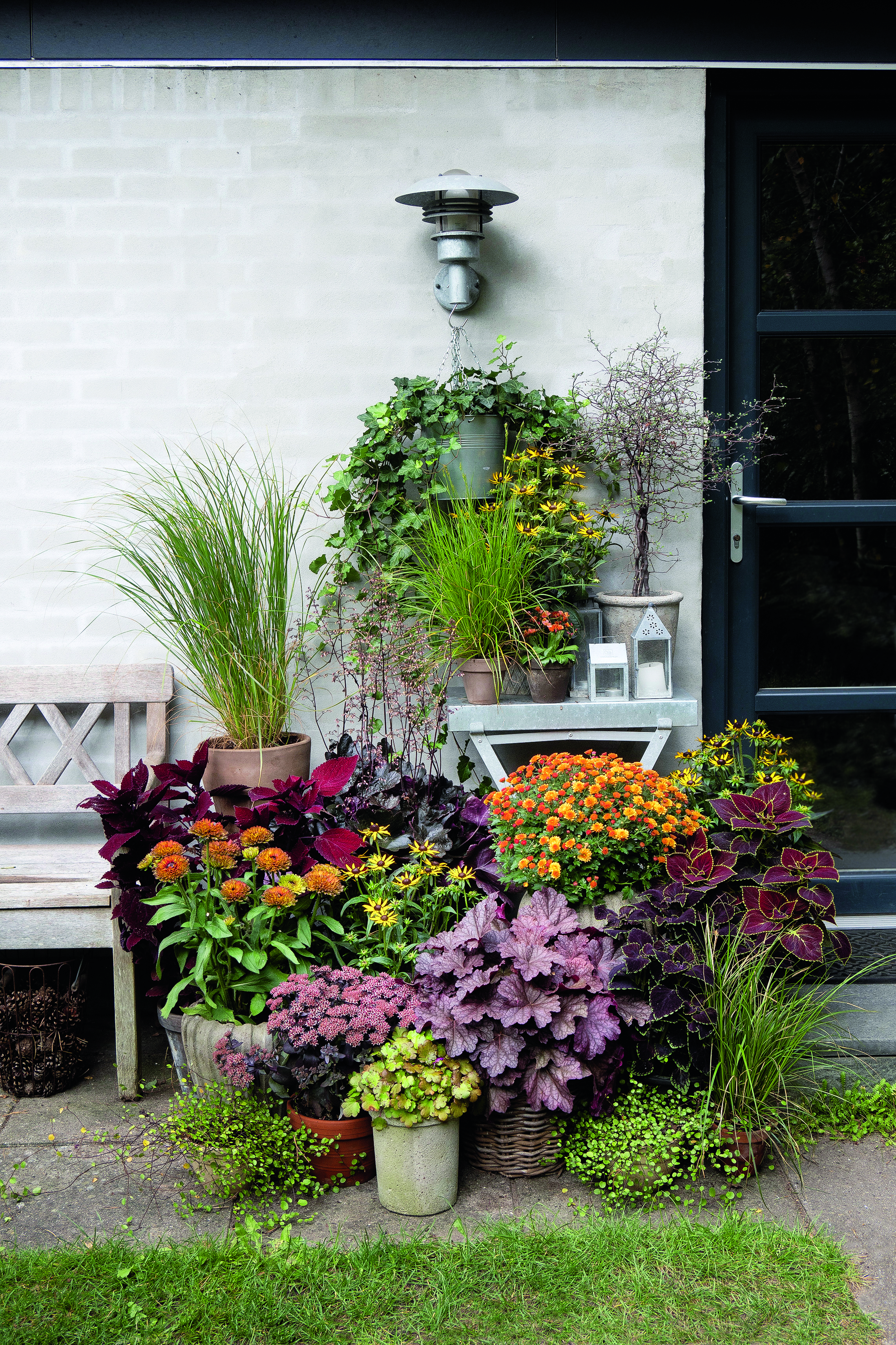 Sommerblomsterne, der blev plantet i krukker i maj/juni, har blomstret uafbrudt i 3-4 måneder nu, og de ser måske efterhånden lidt halvvisne og forvoksede ud. Det er tid til at udskifte dem med efterårsblomstrende asters, pyntekål, lyng, sankthansurt eller små stedsegrønne buske, der kan pynte til ud på vinteren. Har du et frostfrit drivhus, kan mange af sommerblomsterne overvintre der, og næste år vil de kunne sættes ud igen.