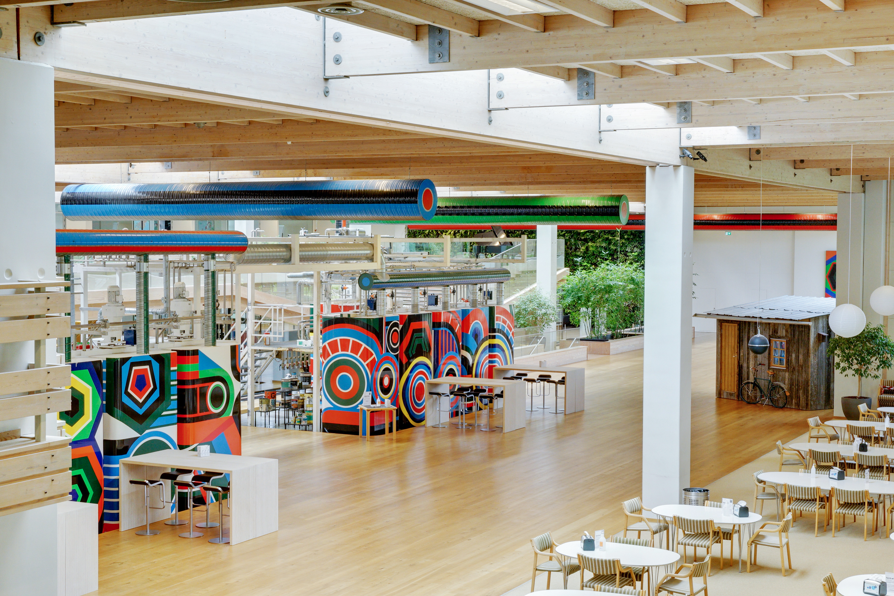 Centralt i det 9.500 m2 store kompleks findes de originale lagertanke til produktion, der er udsmykket af den franske kunstner Jean Dewasne, og andre installationer, der både giver grobund for et inspirerende miljø og en særlig stemning. Omgivelser som EWII Koncernen nu får glæde af.