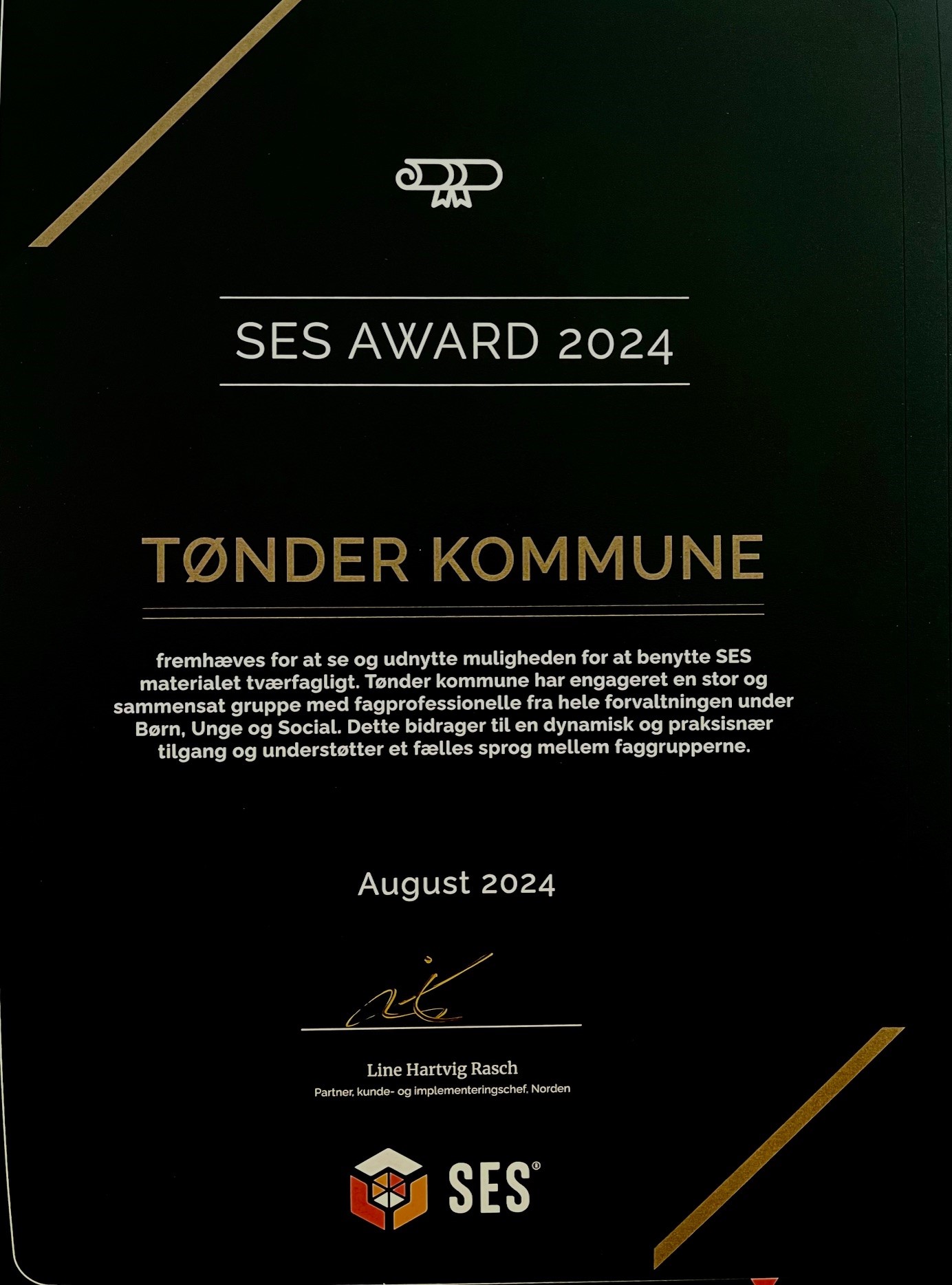 Motivationen bag prisen fremhæver Tønder Kommunes innovative tilgang til at integrere SES på tværs af forskellige fagområder. Dette har skabt en stærk og sammenhængende indsats, der gavner både børn, unge og familier i kommunen.