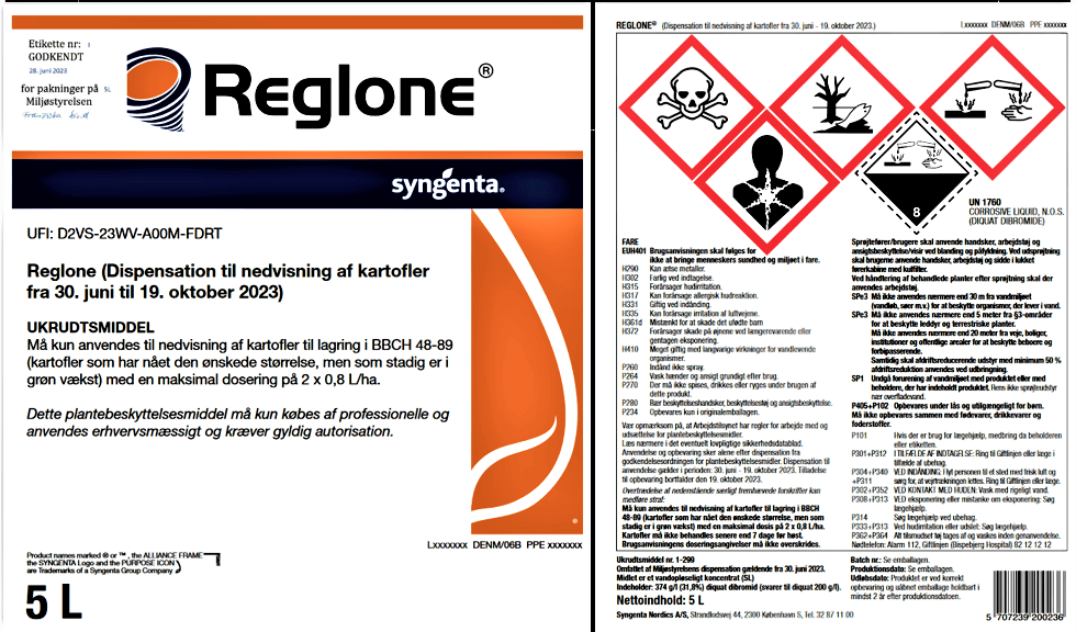 Trods al snak om ”forsigtighedsprincippet”, som er den officielle tilgang til risikostyring i EU, har Miljøstyrelsen alligevel siden 2019 tilladt den forbudte sprøjtegift i Danmark. Det er sket for at imødekomme pres fra kartoffelbranchen, der insisterer på at bruge sprøjtegiften til at nedvisne kartoffelplanterne for derigennem at opnå en bedre kvalitet af læggekartofler.