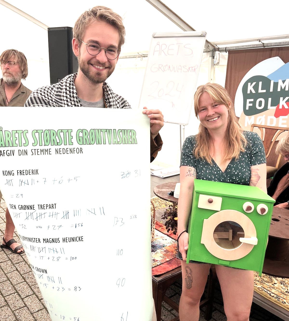 Deltagerne ved klimafolkemødet var ikke i tvivl og stemte den grønne trepart ind på en førsteplads foran Kong Frederik, Miljøminister Magnus Heunicke, Danish Crown og Mærsk. Den grønne trepart står altså som det allerklareste symbol på grønvask for deltagerne på årets Klimafolkemøde.