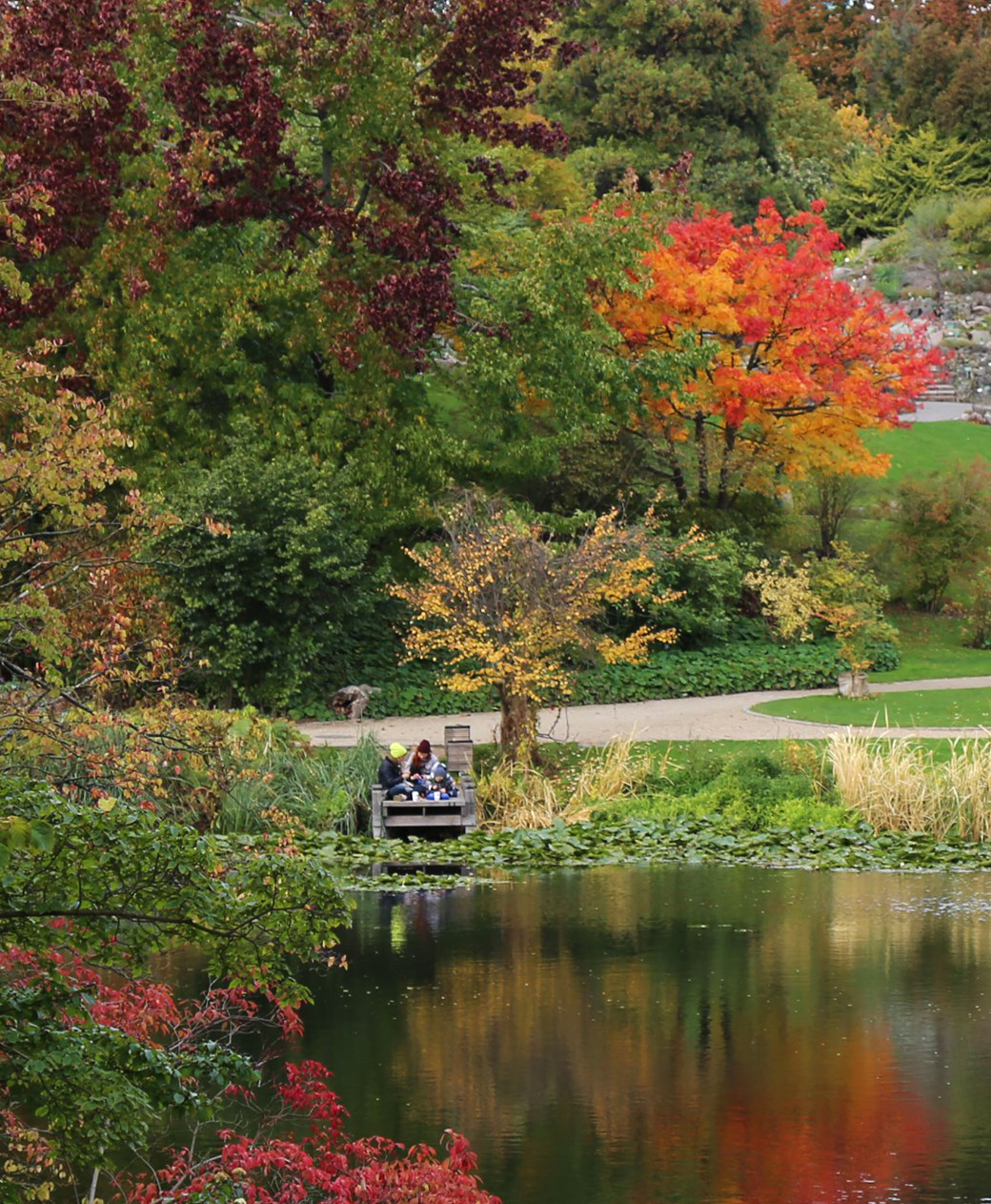 I Botanisk Have har løvet fået smukke røde og gule nuancer. Her kan du lune dig på en kop varm kakao fra kaffevognen, eller tage et smut til troperne i Palmehuset, og opleve de levende sommerfugles forunderlige forvandling i Sommerfuglehuset.