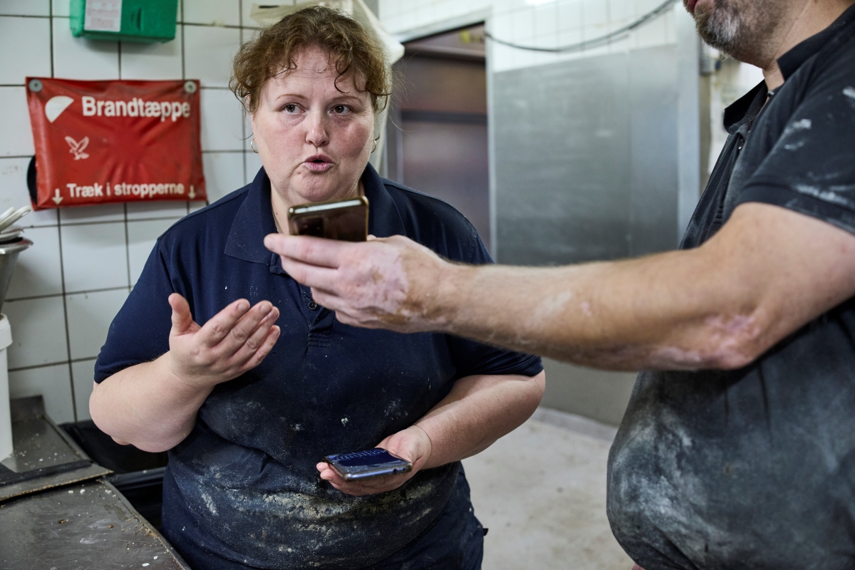 Da Inna har svært ved at snakke dansk, har hun og kollegerne i bageriet fundet en måde, de kan kommunikere på.