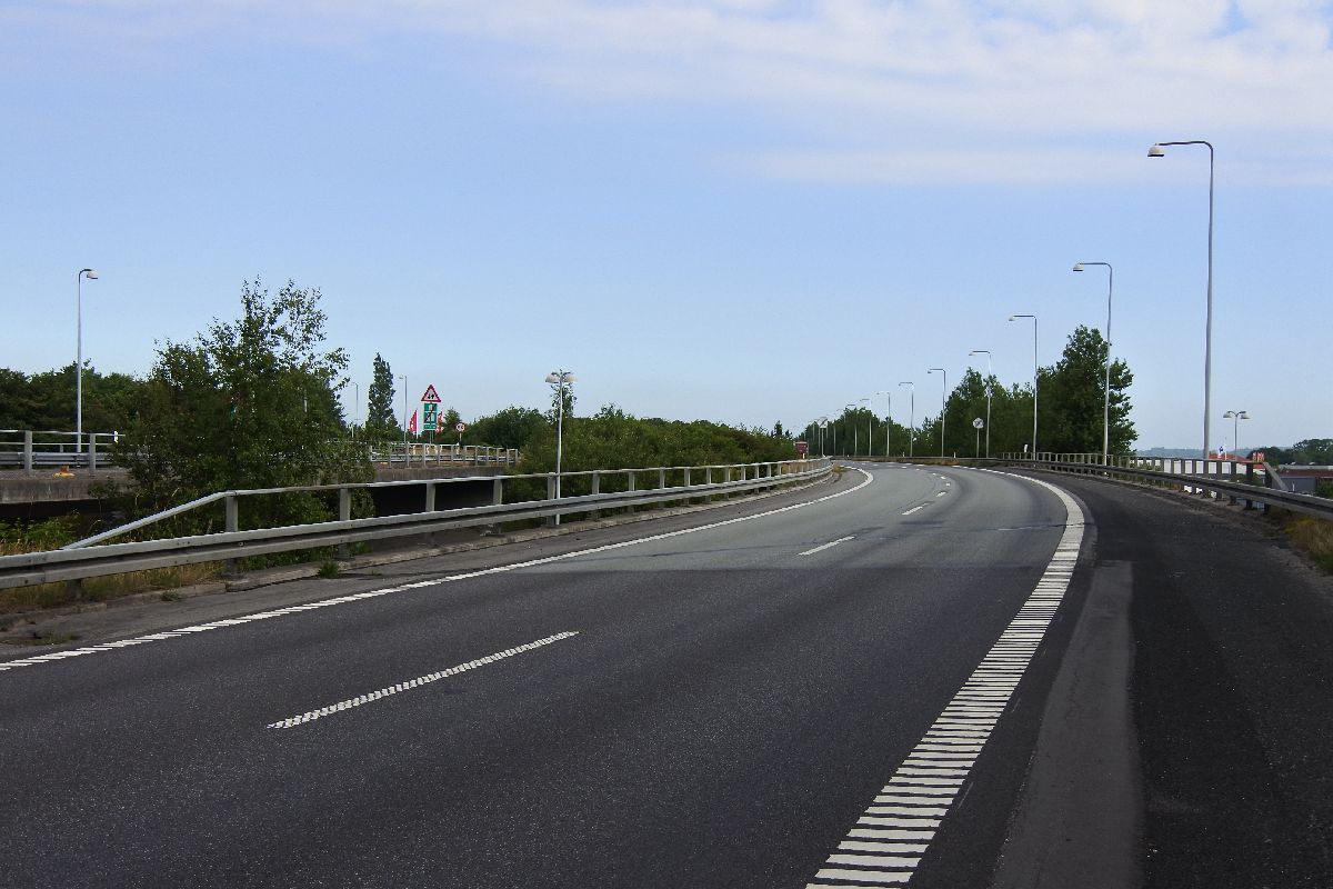 Der skal skiftes slidlag og støbes fuger på den motorvejsbro, der fører E39 Hirtshalsmotorvejen over E45 Frederikshavnmotorvejen ved Bouet i Nørresundby.
