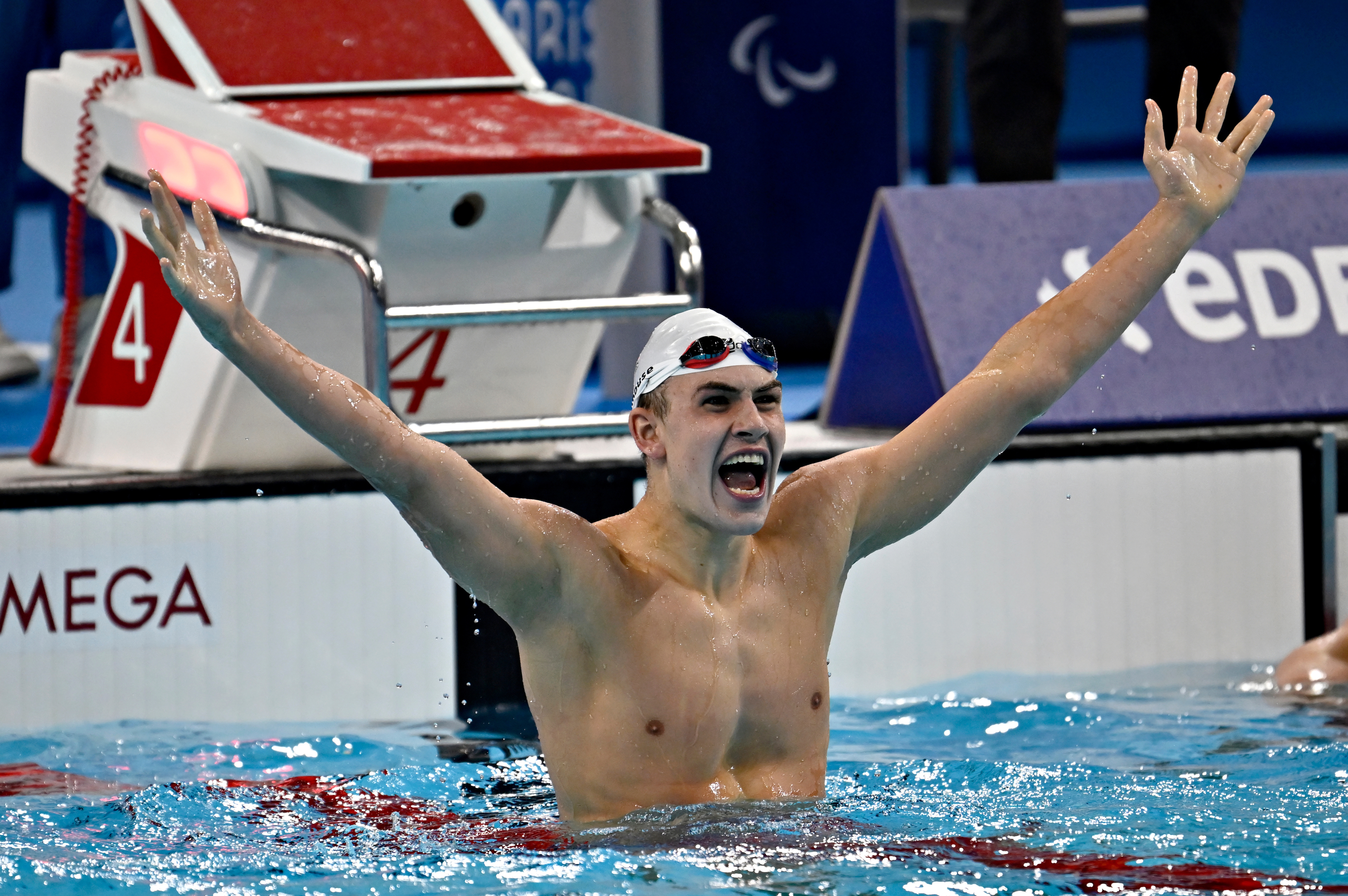 Alexander Hillhouse vandt guld i 100 m fly på første konkurrencedag ved PL i Paris.