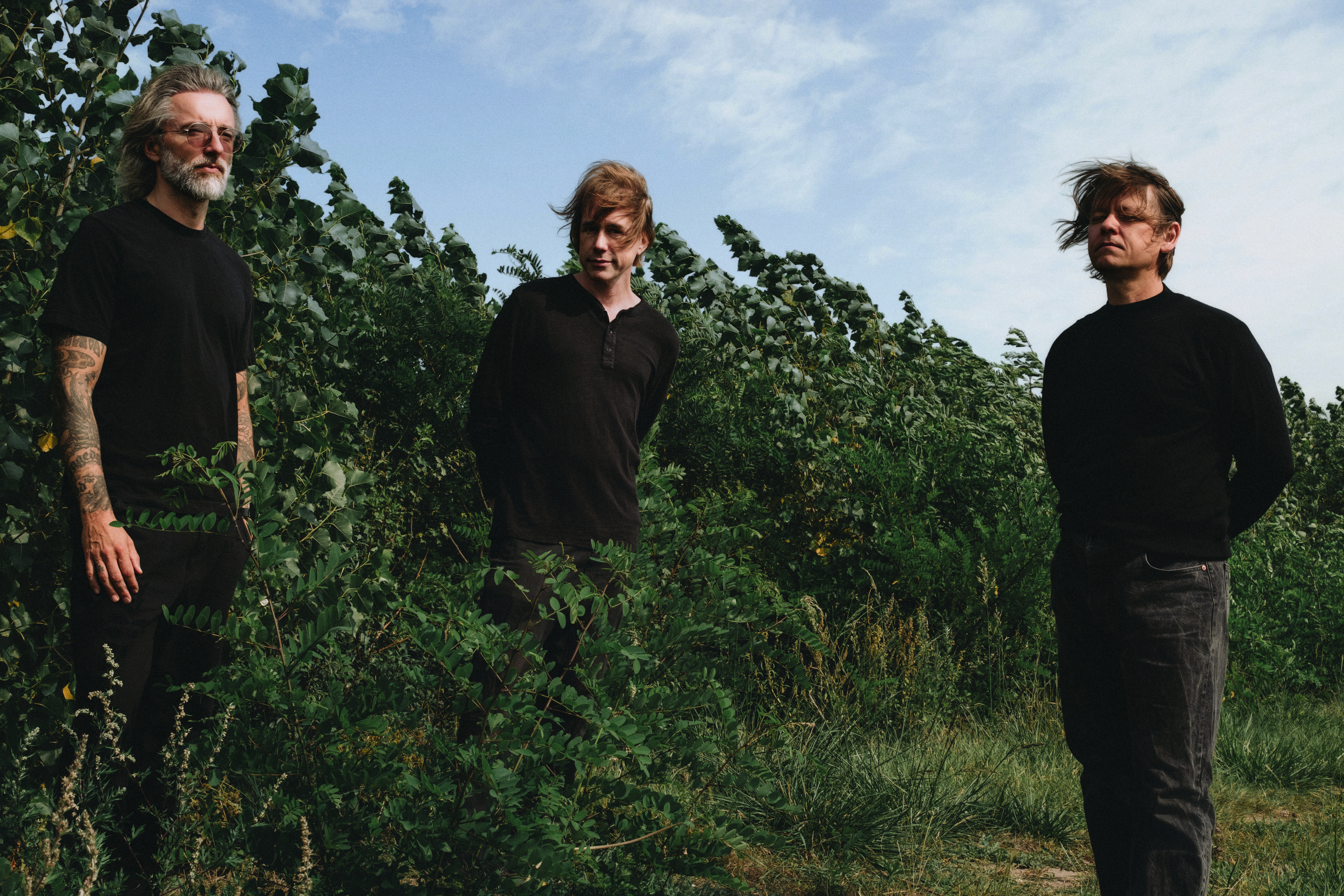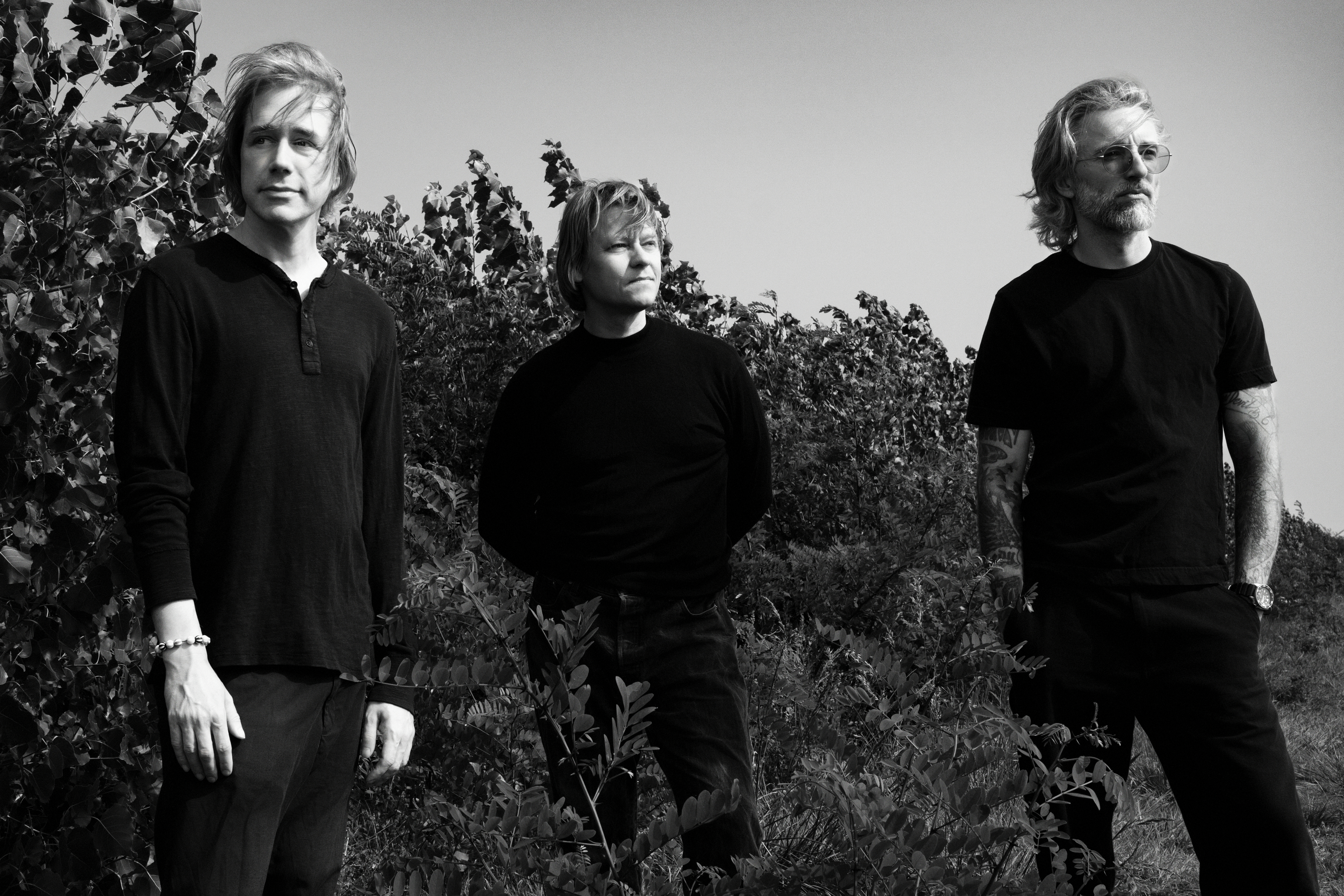 Foto af bandet Mew. Fra venstre mod højre: Johan Wohlert, Jonas Bjerre, Silas Jørgensen
