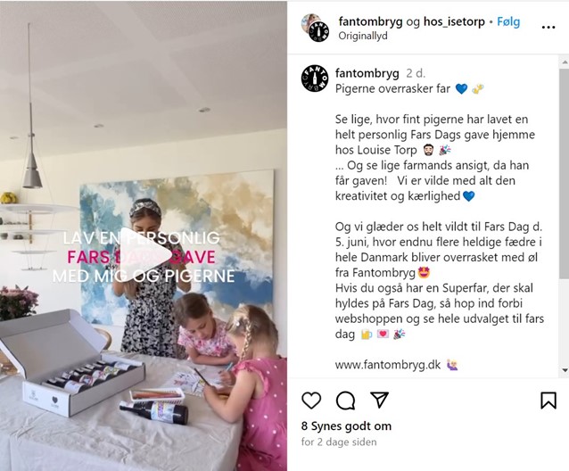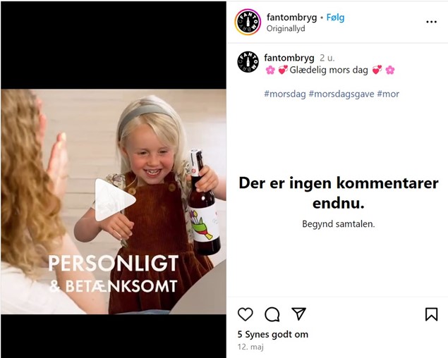 Markedsføring af alkohol må, uanset hvilken form den antager, aldrig rette sig mod eller kobles til en sammenhæng, der retter sig mod børn og unge. Derfor er det en overtrædelse af Alkoholreklamenævnets retningslinjer for markedsføring af alkohol, at Fantombryg og influencer Louise Torp Schougaard i tre opslag på Instagram har ladet børn farvelægge øletiketter og aflevere øl med disse etiketter til deres far og mor.