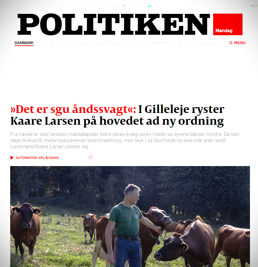 Det er der ikke den store begejstring blandt kvægavlere som Politiken har talt med. Den højtprofilerede mælkeproducent ved Søborg Sø i Nordsjælland, Kaare Larsen, har svært ved at forstå, at ordningen er skruet sådan sammen. Til Politiken siger han: