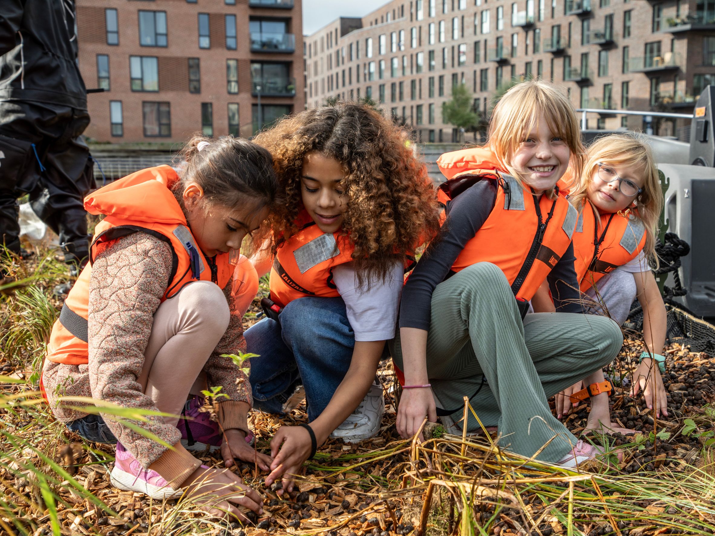 Elever fra Skolen i Sydhavnen hjalp torsdag til med at plante hjemmehørende arter som kattehale, strandasters og mjødurt, der trives godt i saltholdigt omgivelser på den flydende have. Her fik eleverne samtidig mulighed for at lære mere om biodiversitet og dansk natur både på land og i vand.