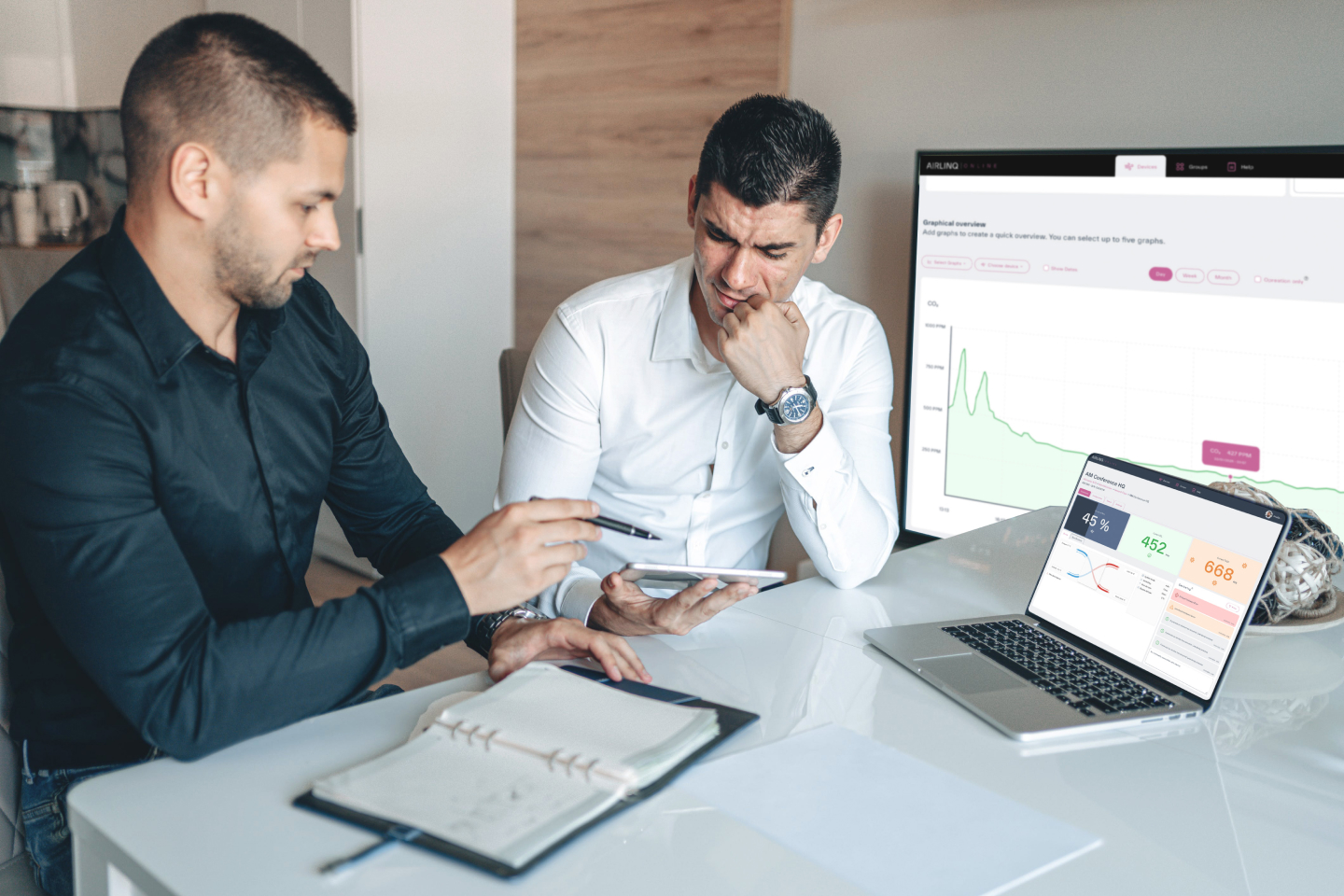 Med Airlinq® Online får du det fulde overblik over alle anlæg og deres driftstatus. Platformen giver nemlig et samlet overblik over alle enheder, hvilket gør det nemt at administrere og overvåge anlæggene effektivt, uanset om man tilgår platformen fra PC, smartphone eller tablet.