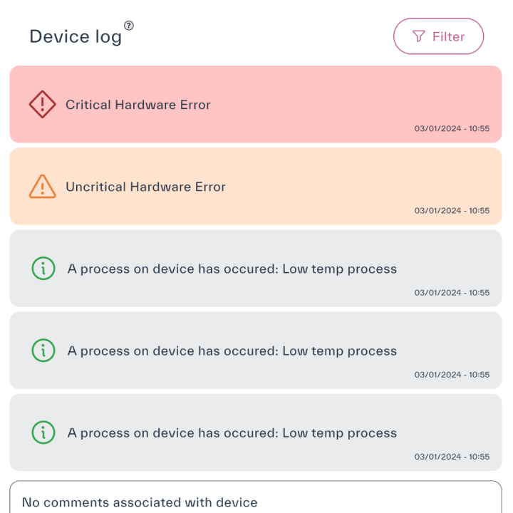 Modtag notifikationer om vedligeholdelsesbehov eller systemfejl, hvilket muliggør en evt. hurtig problemløsning. - Effektiv serviceplanlægning