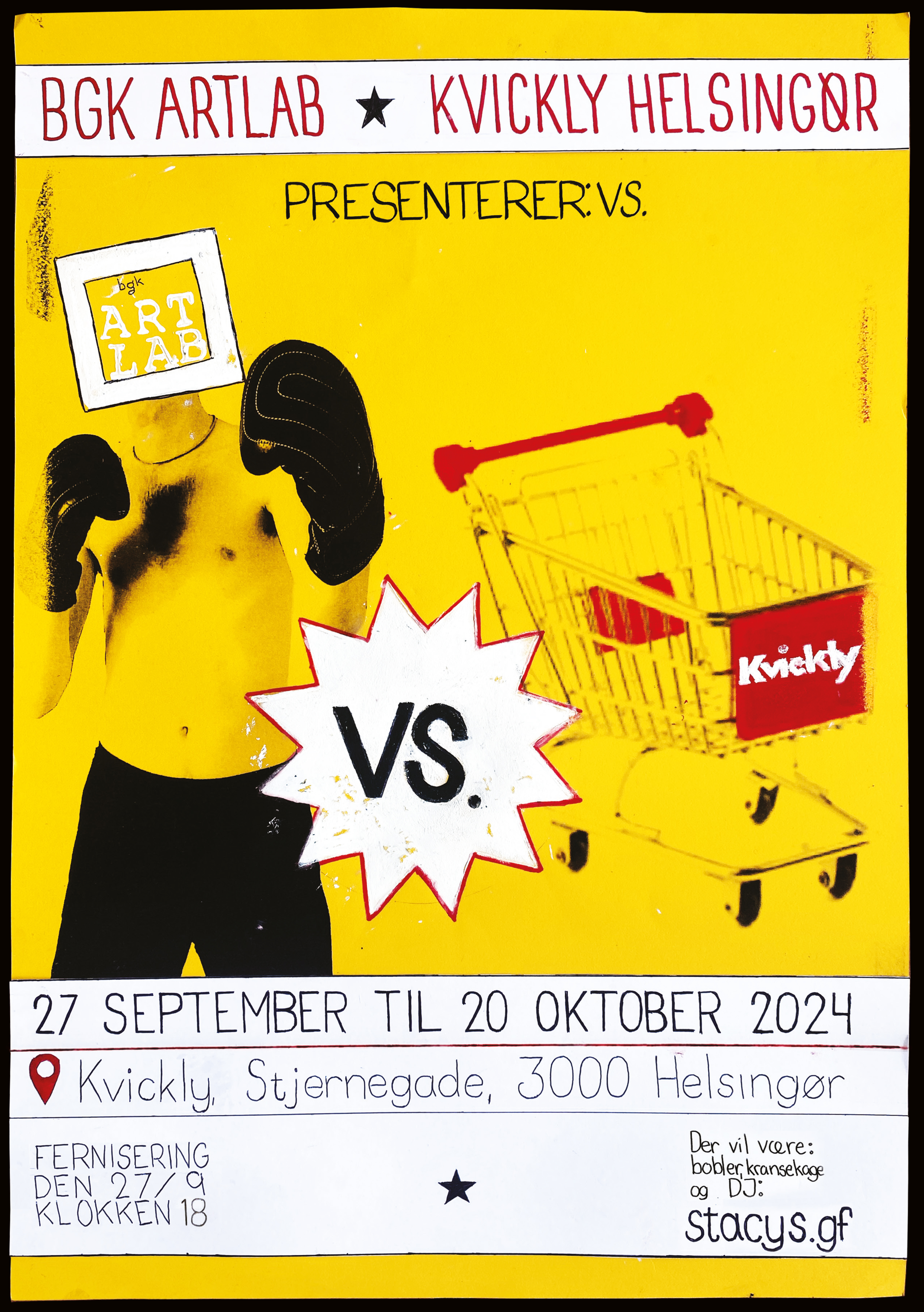 BGK ArtLab og Kvickly Helsingør inviterer til fernisering på udstillingen Vs. fredag den 27. september kl. 18-20 i Kvickly, Stjernegade i Helsingør. Der vil være tale ved underviser på BGK Artlab Jacob Tækker samt byrådsmedlem Knud Mogensen g undervejs vil der være DJ, kransekage og bobler. Alle er velkomne.