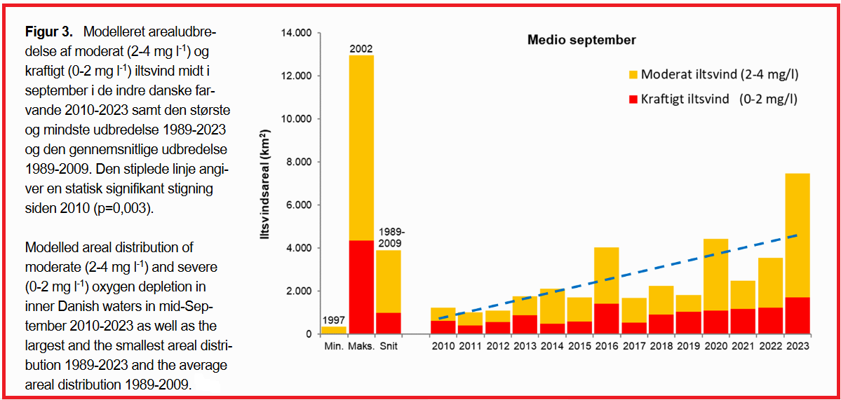 Problemerne med iltsvind vokser gennem sommeren og er normalt værst i september. Men de seneste målinger viser, at vi er 2-3 uger længere fremme i forhold til iltsvind i de danske farvande generelt end på samme tid sidste år. Det giver ifølge Danmarks Naturfredningsforening grund til at frygte endnu et efterår med historisk omfattende iltsvind, der meget vel kan blive endnu værre end sidste år.