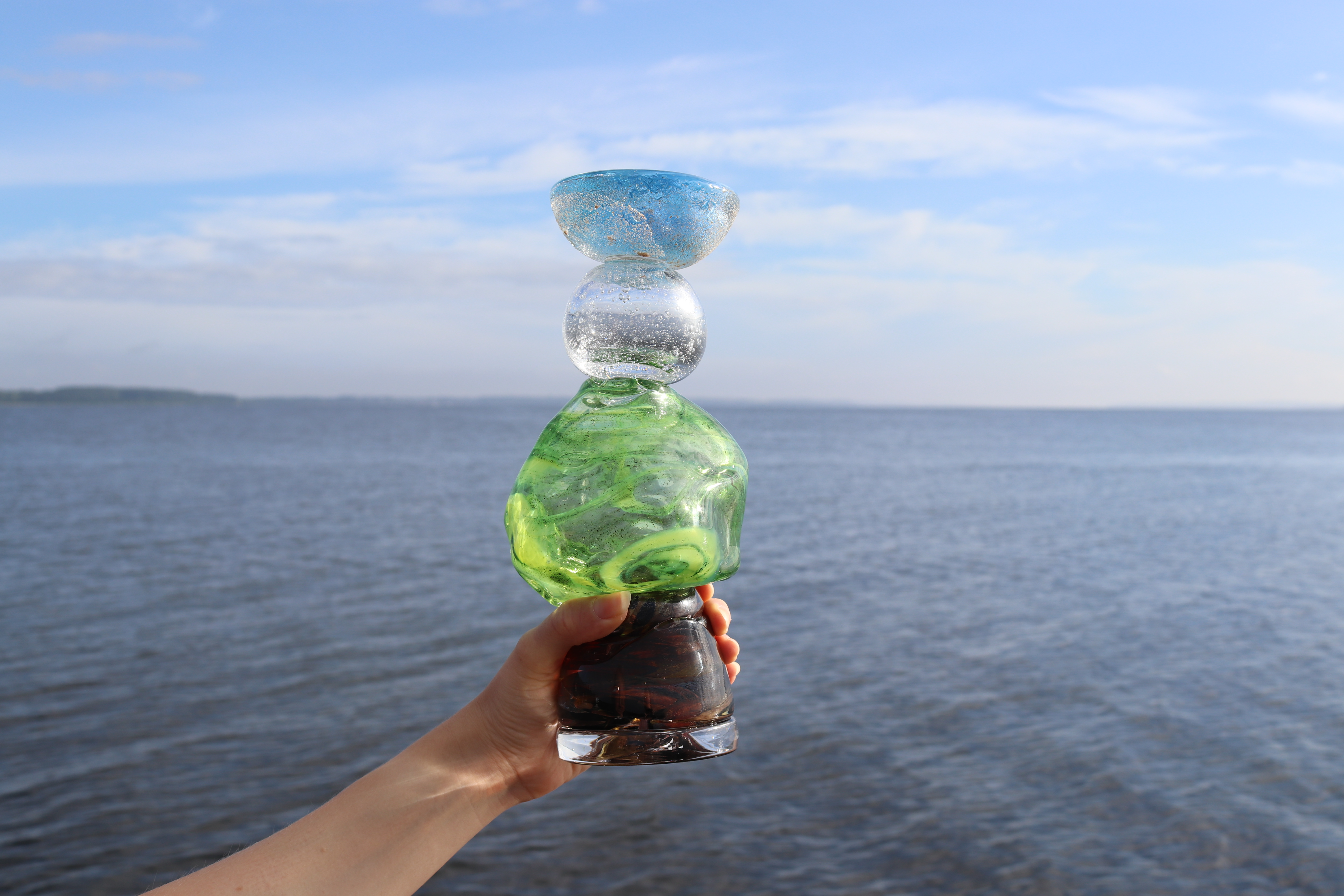 - Depechen er en glasskulptur designet af Alberte Bremland Sørensen, der i foråret var design-elev på Krabbesholm Højskole i Skive. Depechen er håndpustet i glas af glaspuster Thea Andersen og symboliserer med sine farver livet, men også de ødelæggende processer i fjorden. Depechen har været iklædt et flydende og beskyttende hylster under transporten gennem fjordene.
