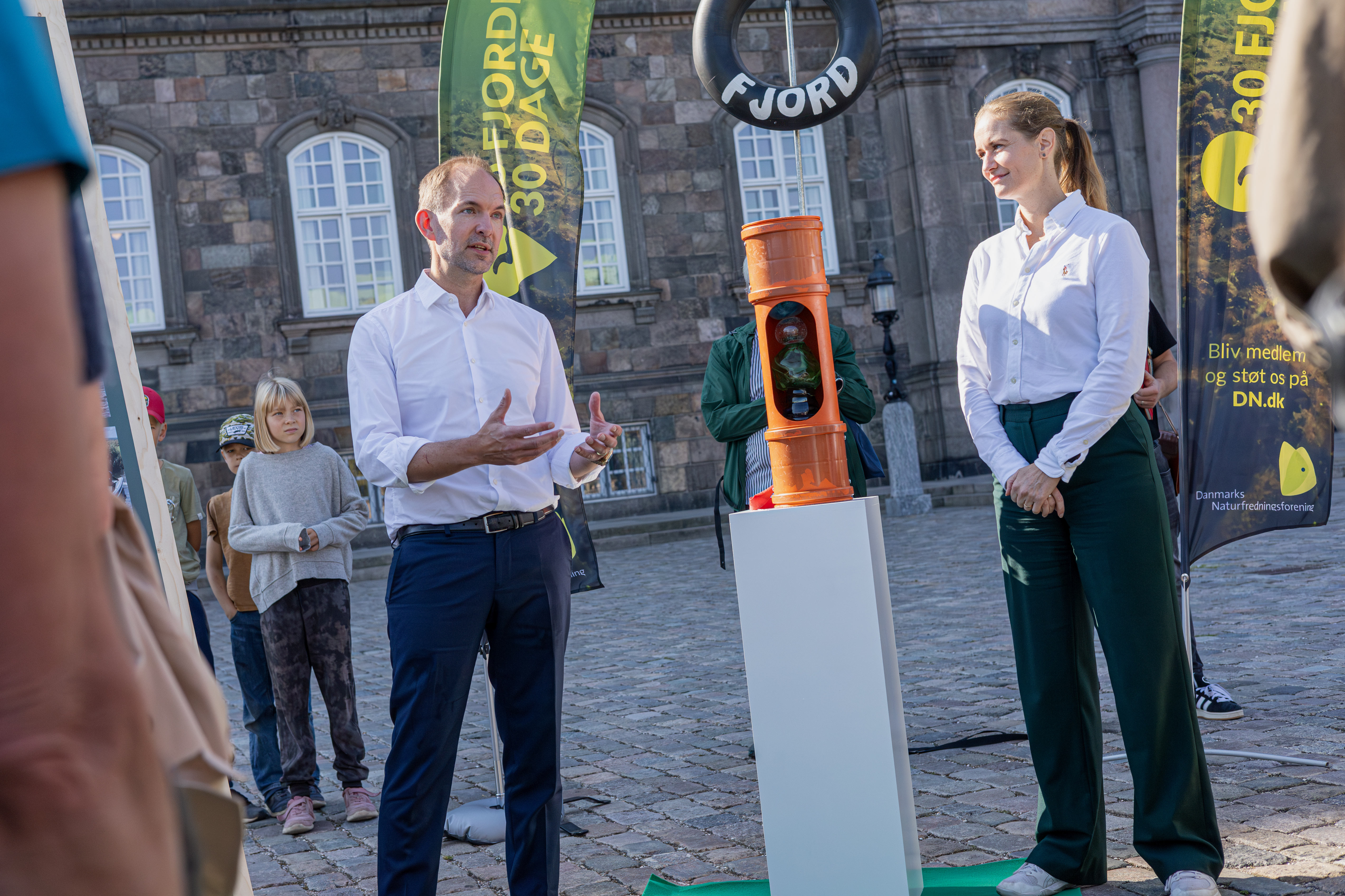 Langs Slotsholms Kanal foran Christiansborg stod den nyslåede minister for Grøn Trepart, Jeppe Bruus, fredag eftermiddag klar til at modtage en særlig depeche, som har været på rundfart i de danske fjorde som led i stafetten "30 fjorde 30 dage".