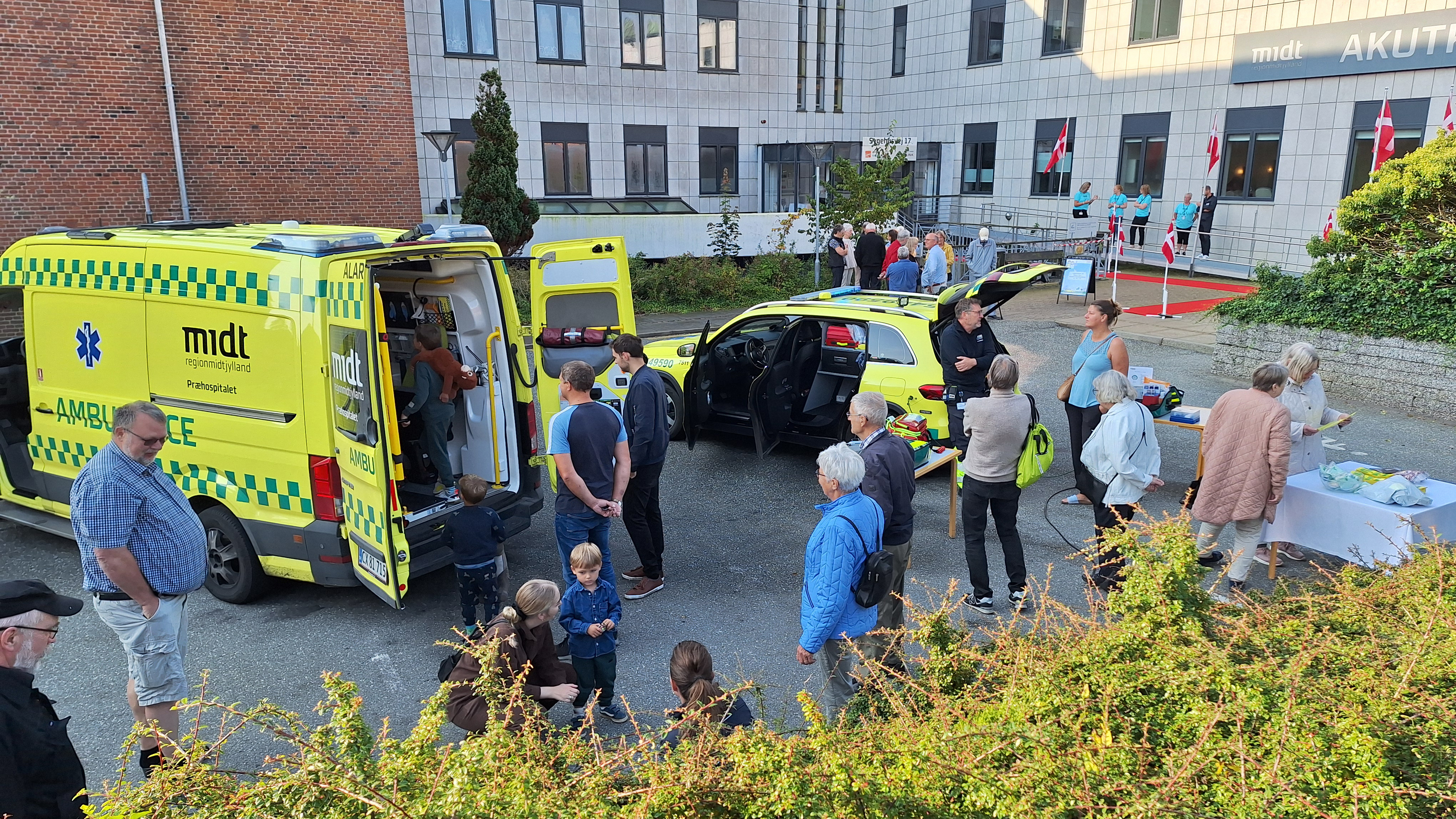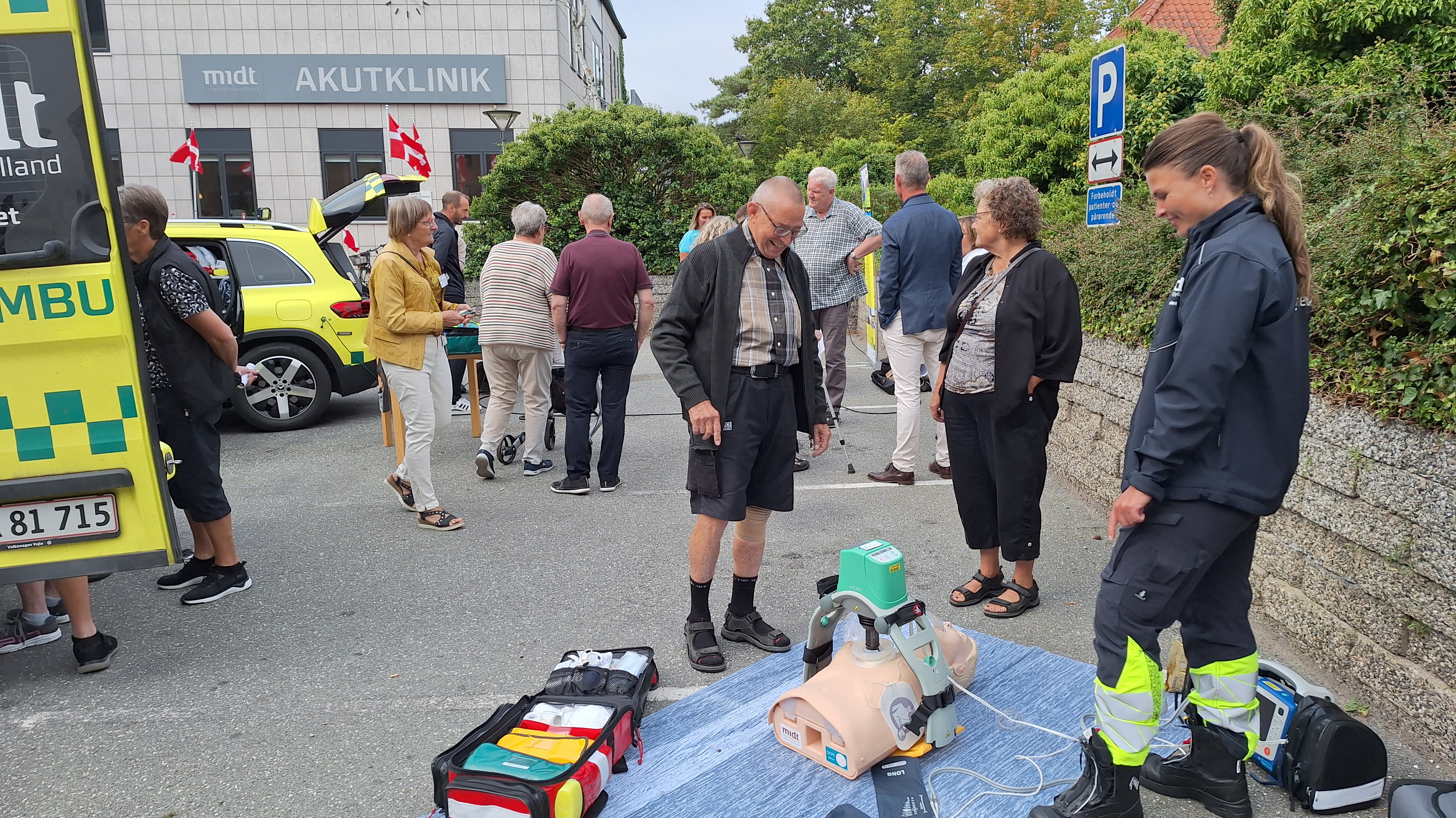 Udenfor havde præhospitalet linet både ambulance og paramedicinerbil op og var klar til både at vise og fortælle om det udstyr, de tager med ud til akutte opgaver.
