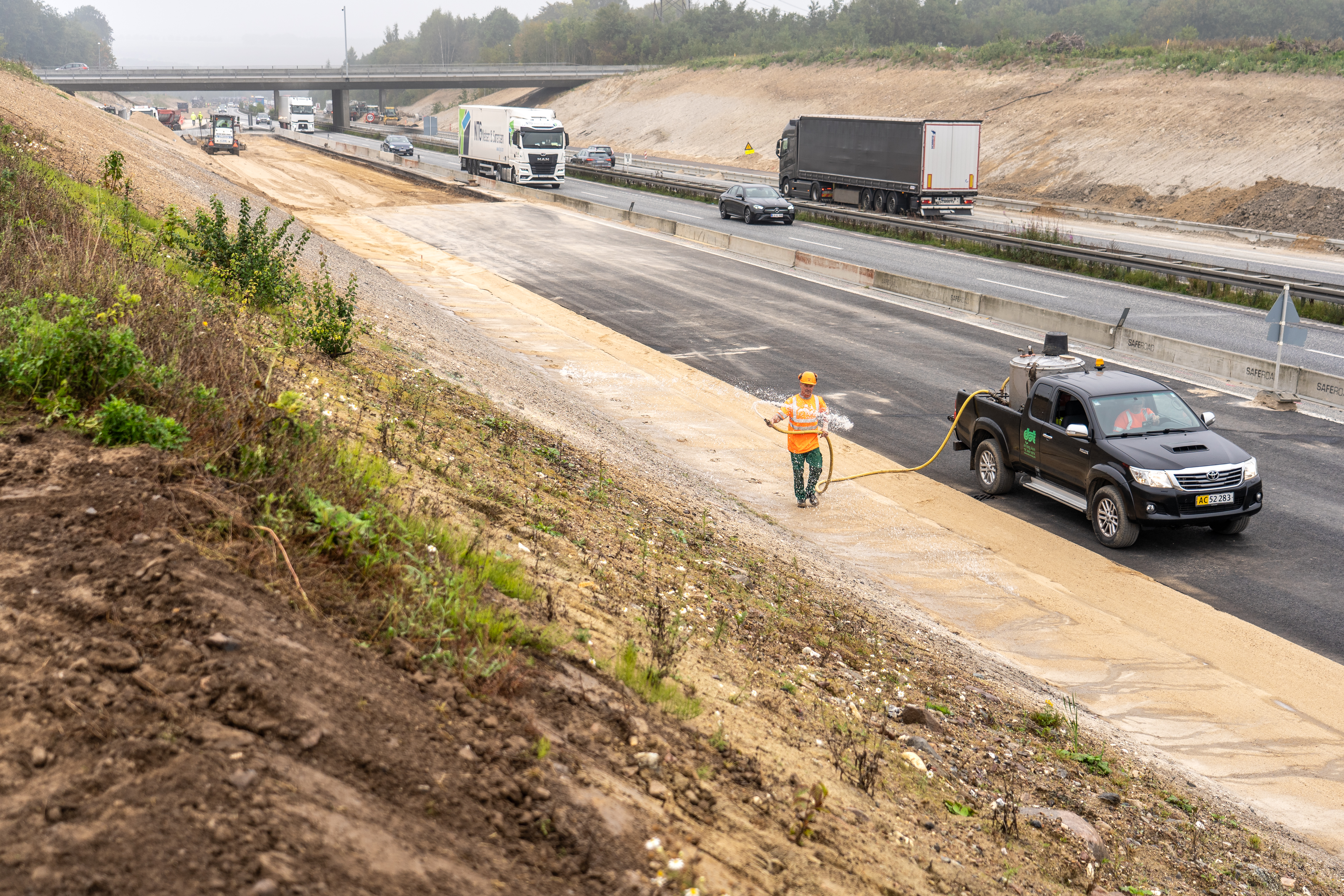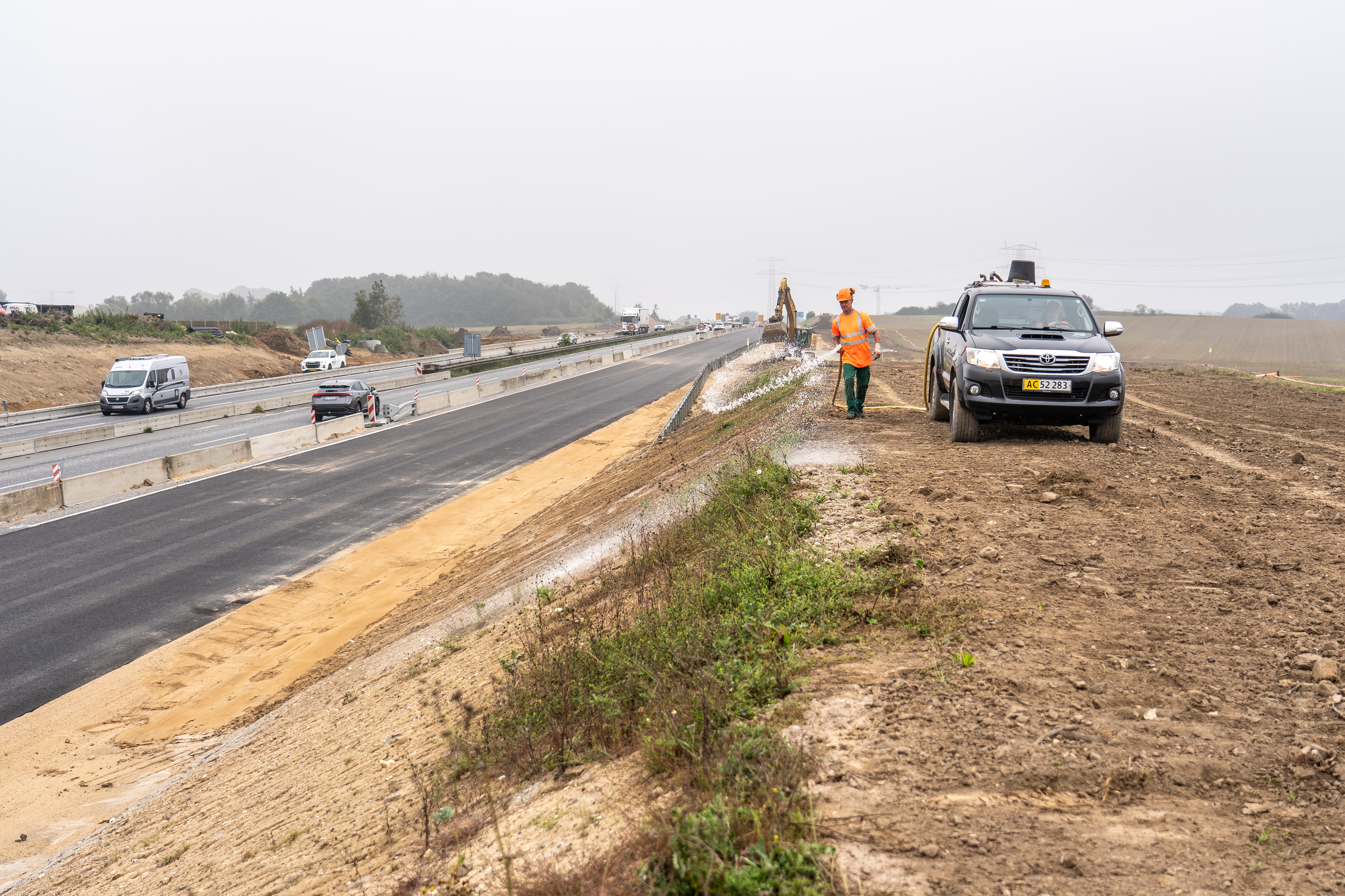 Det skete på en vejskråning langs E45 ved Aarhus Syd, hvor transportministeren spredte de første frø fra en pickuptruck.