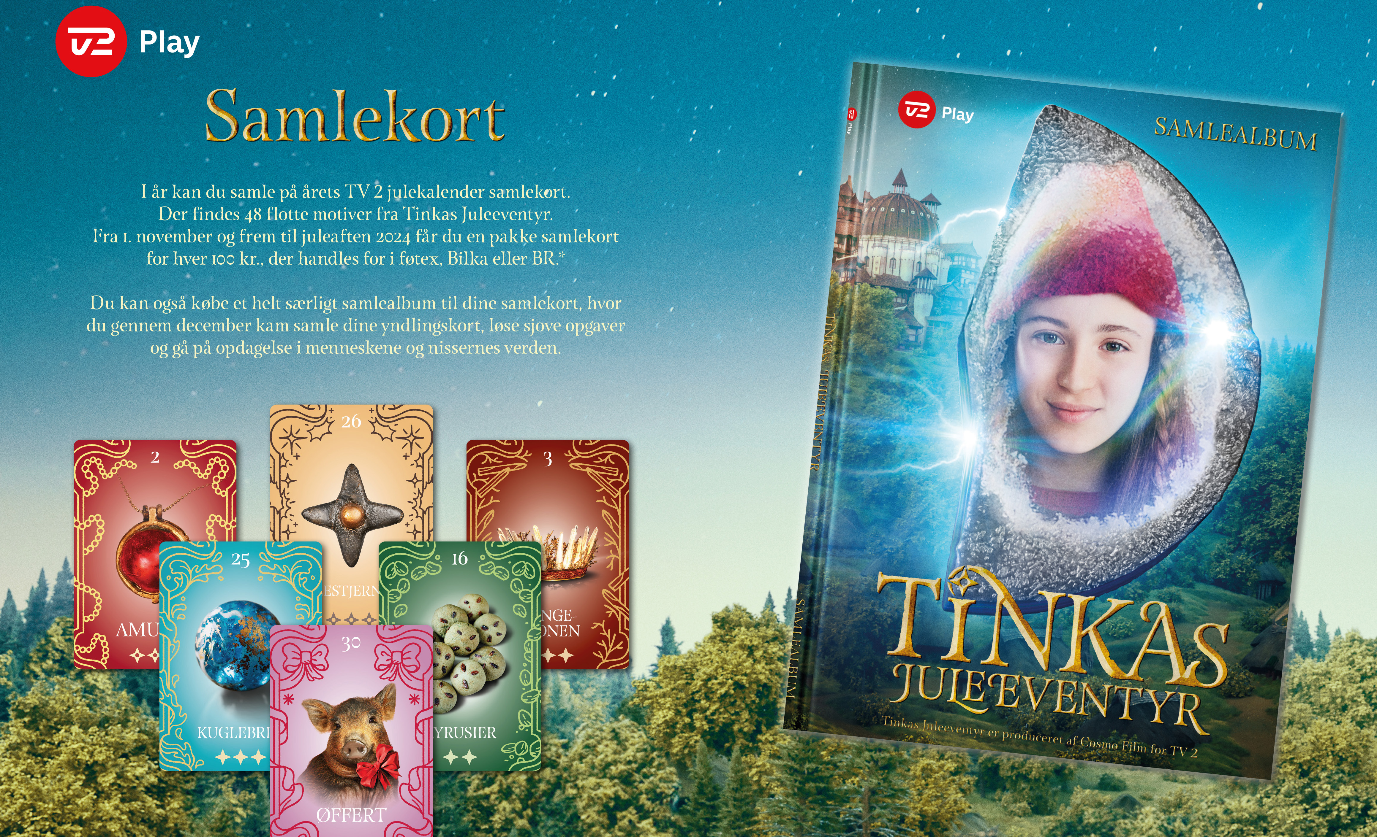 Igen i år er det muligt at samle på kort fra 'Tinkas Juleeventyr'. Der er 48 flotte motiver, og fra 1. november og frem til juleaften i år får man en pakke samlekort for hver 100 kroner, der handles for i føtex, Bilka eller BR. Man kan også købe et særligt album til kortene, hvor kortene kan sættes ind, man kan løse sjove opgaver og gå på opdagelse i menneske og nissernes verden. Samlealbummet koster 40 kroner og kan købes i Bilka, føtex og BR samt online på bilka.dk, føtex.dk og br.dk. Hvis du bor på Bornholm, Ærø eller på Samsø, kan du gå i Netto og få udleveret samlekort og købe dit samlealbum.