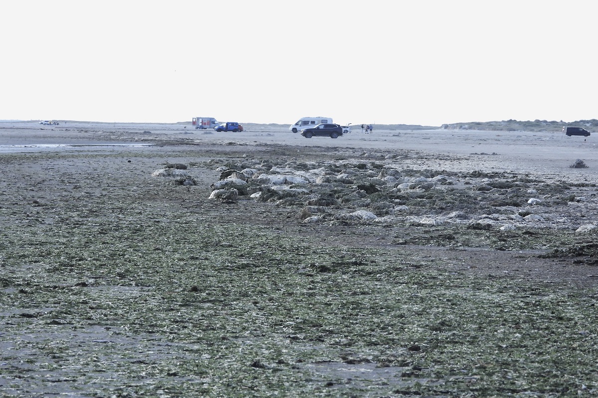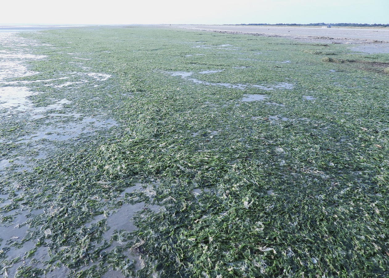 Stinkende bunker af rådden søsalat præger Fanøs hvide badestrande