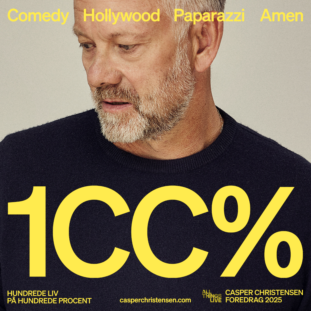 For første gang kan du opleve Danmarks største kreative kraftværk helt tæt på, når Casper Christensen besøger landets fire største byer med foredraget ”100 liv på 100%” i foråret 2025. Kom med bagom Husk lige Tandbørsten, Mandrilaftalen, Tæskeholdet, Langt fra Las Vegas, Klovn, All Exclusive, karrieren, de store drømme, iværksætterrejsen og til sidst at finde roen.