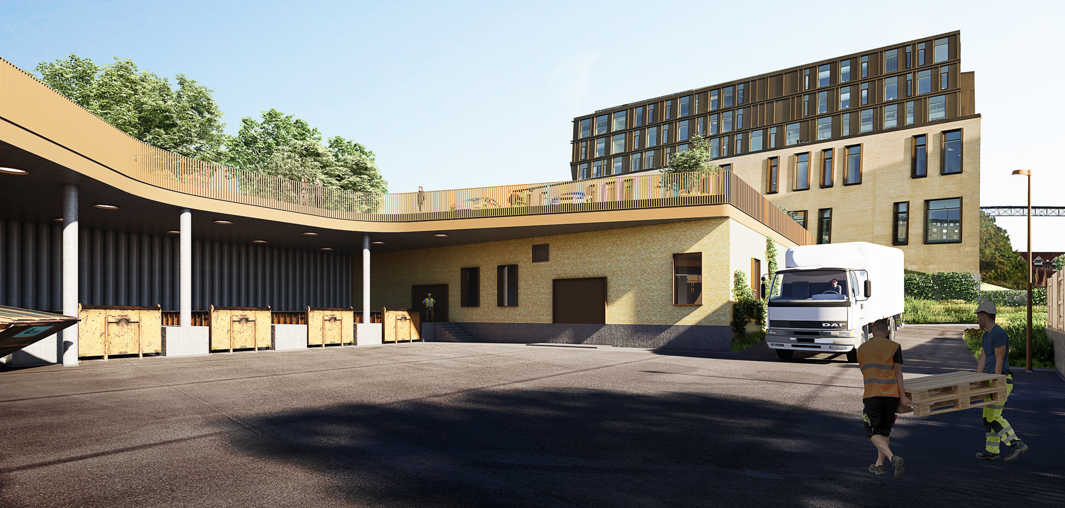 Der er gennemført et totalentrepriseudbud, og fundet et vinderprojekt, der både skal sikre effektiv håndtering af affald og linned og samtidig et byggeri, der passer ind i det lokalområde, det skal ligge i.