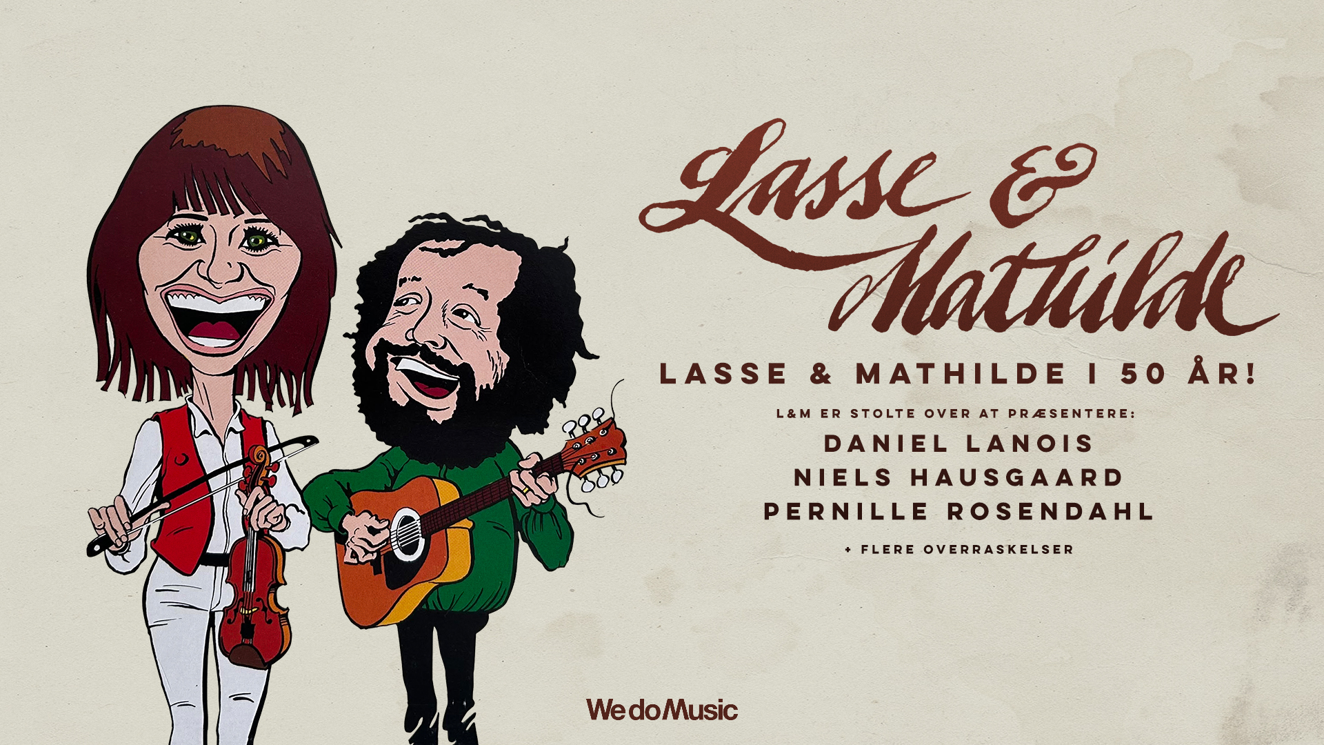 Daniel Lanois, Pernille Rosendahl og Niels Hausgaard er blandt gæsteoptrædenerne, når Lasse & Mathilde i 50 år løber af stablen den 22. maj 2025.