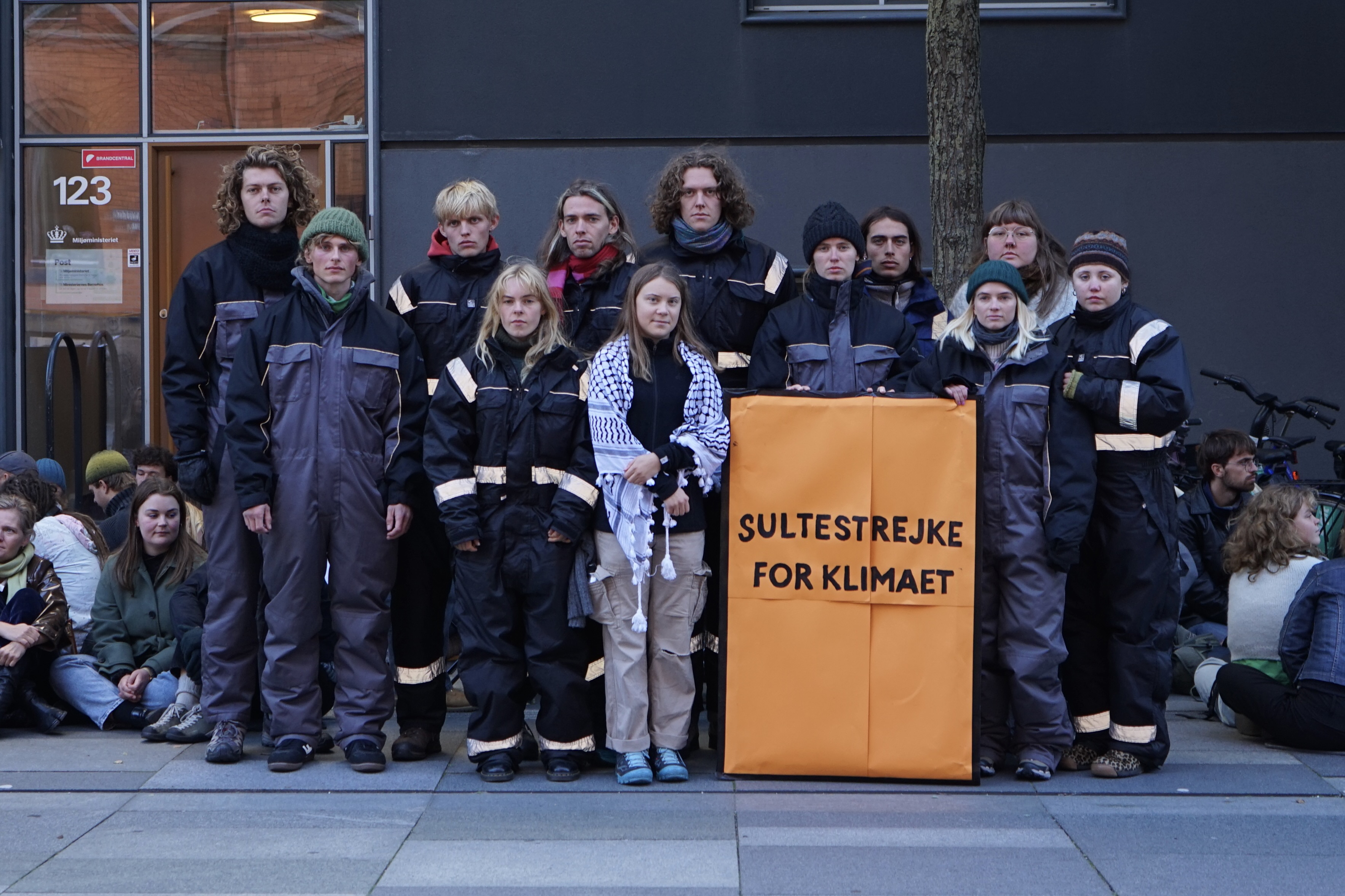 De 11 unge fra Den Grønne Ungdomsbevægelse er nu på dag 4 af deres sultestrejke foran forhandlingerne om Grøn Trepart. I dag var der solidaritetsdemonstration ved siden af de sultestrejkende, hvor omkring 200 personer viste deres støtte ved at sætte sig ved siden af de strejkende – heriblandt den svenske klimaaktivist Greta Thunberg.
