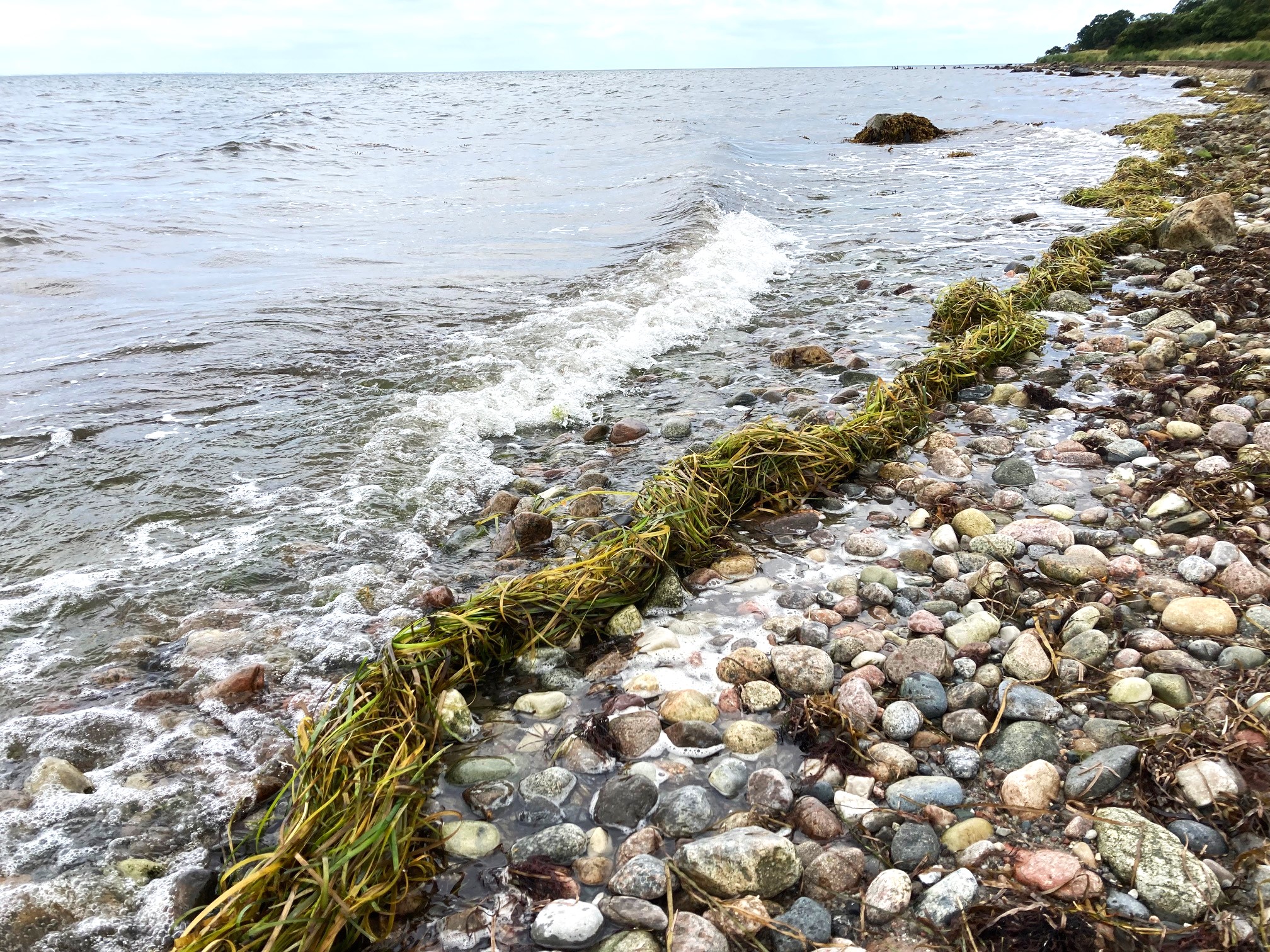Selv i den Natura2000-beskyttede Aunø Fjord skyller landbrugets døde ålegræs i land langs Knudshoved Odde i Sydsjælland. Pressefoto til download.