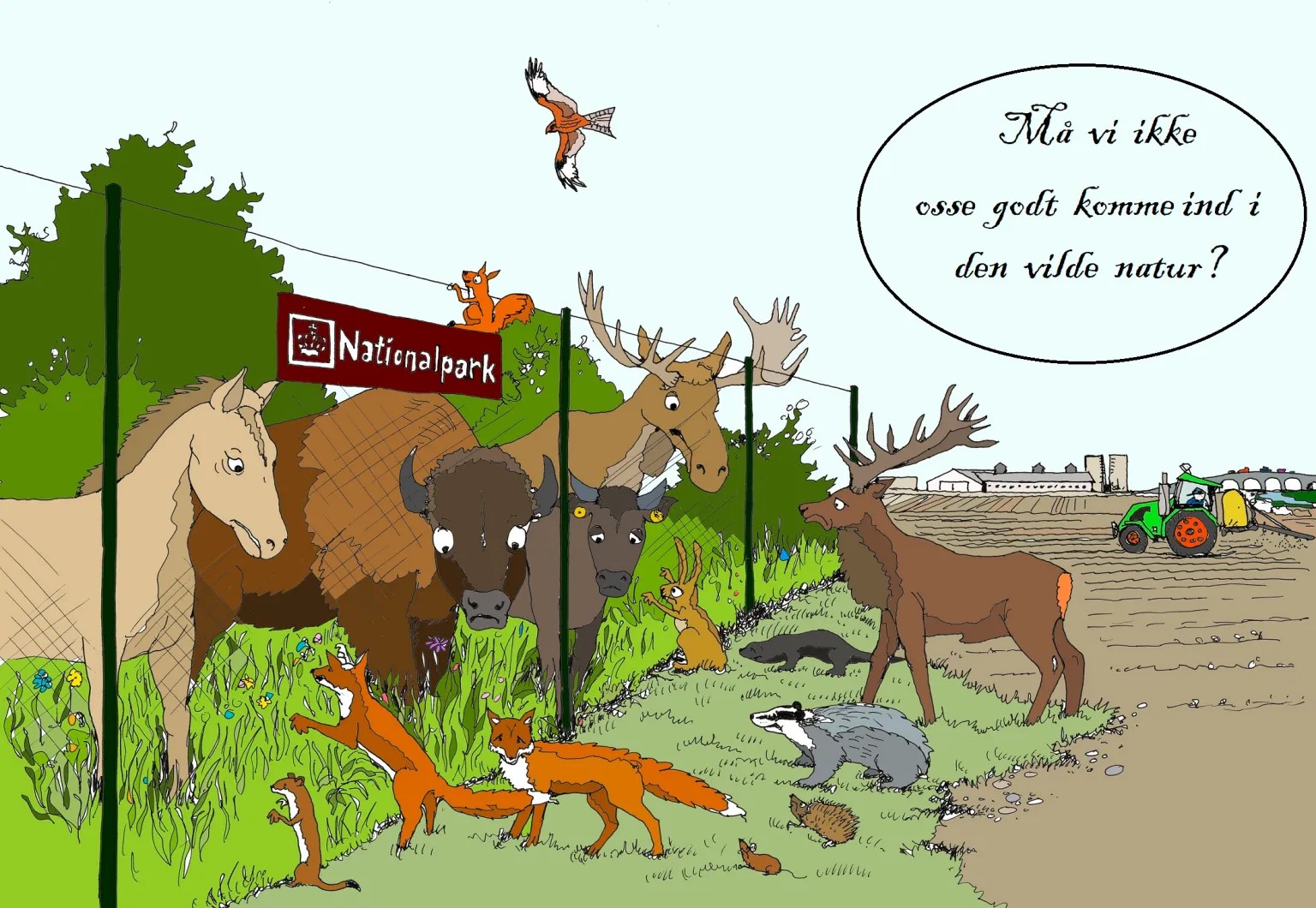 Proportionerne bag kravet kan virke noget forvredne. Når der måske kommer til at græsse nogle hundreder eller tusinder kvæg i naturnationalparker og andre steder i fremtiden, så tæller den danske kvægbestand knap 1,5 mio. høveder. Og hvor antallet af vildsvin/svin bag hegn i dyrehaver er under 100 i dag, så tæller den stående svinebestand 11 mio. dyr inde på svinekødsfabrikkerne.