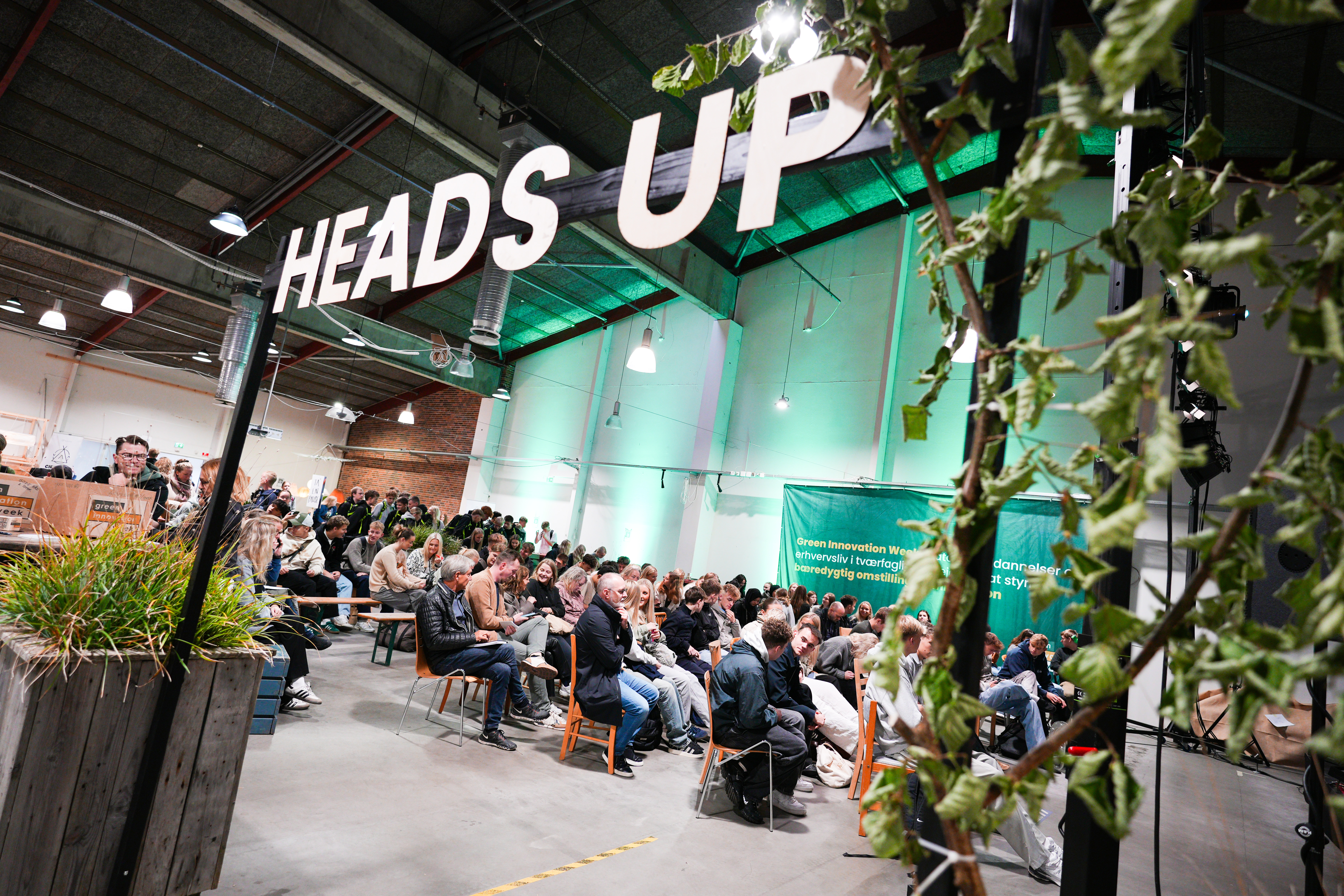 På en kølig septembermorgen i en gammel XL-lagerhal summer det af liv. GIW 2024 (Green Innovation Week) er netop gået i gang, og unge elever, studerende, jakkesæt, håndværkere og striksweatre stimler sammen foran Heads Up-scenen, der med sine pallemøbler og grønne planter sætter tonen for dagens program.